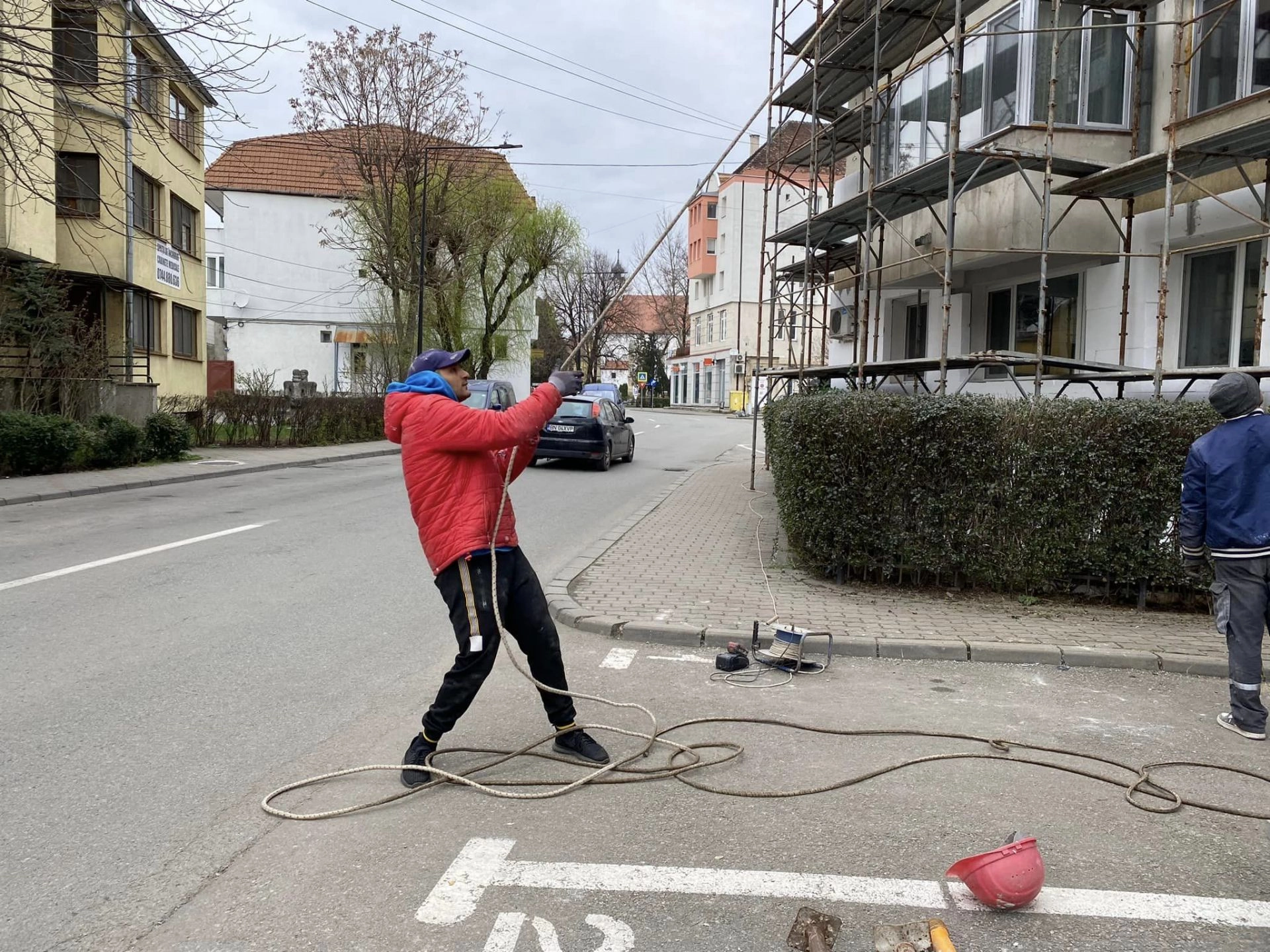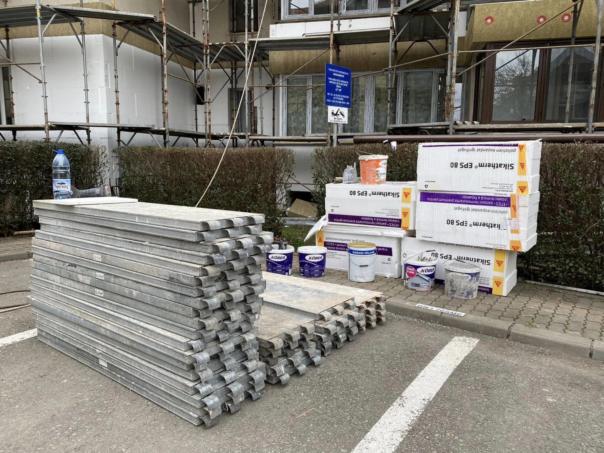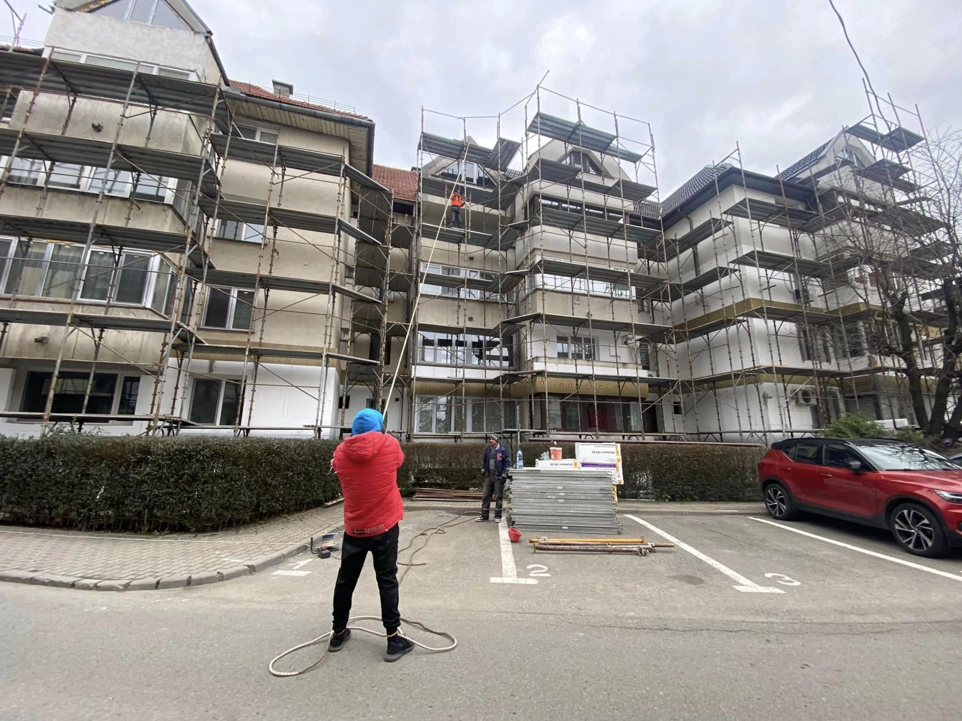 Continuă lucrările de reabilitare a blocurilor din Bistrița. Primarul Ioan Turc a fost prezent sâmbătă pe șantierul din Piața Morii.
