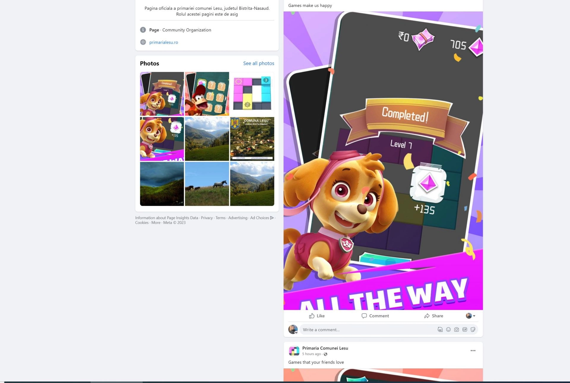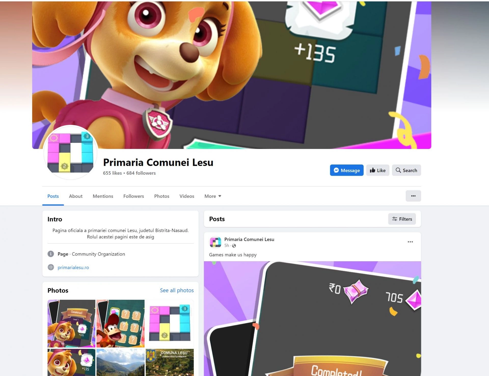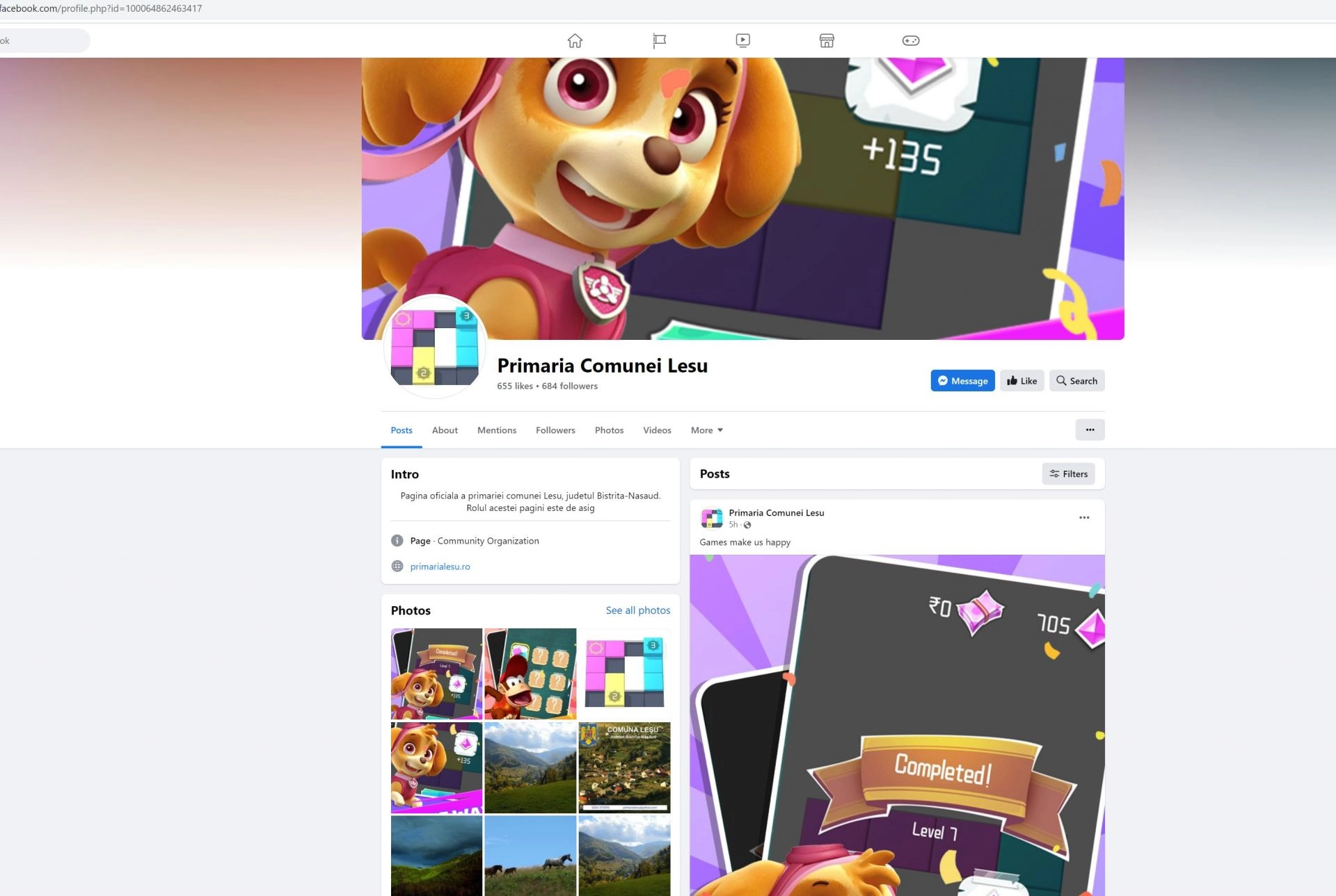 Felicitări! Primăria comunei Leșu a trecut de nivelul 1 al unui joc cu cățeluși! Marea realizare apare chiar pe pagina oficială de Facebook a instituției de pe Valea Ilvelor.