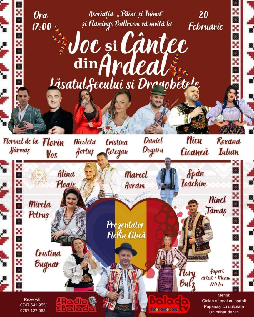 „Joc și cântec din Ardeal – Lăsatul Secului & Dragobetele” - Sărbătoare românească la Flamingo Ballroom Bistrița