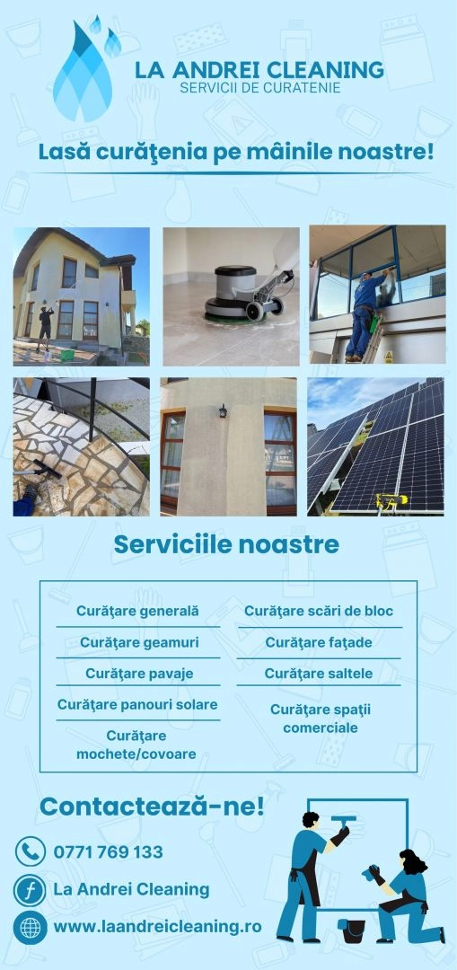 La Andrei Cleaning - Servicii de curățenie profesională, pentru clădiri, geamuri, tapițerii și panouri fotovoltaice