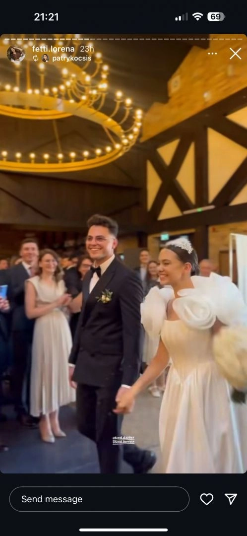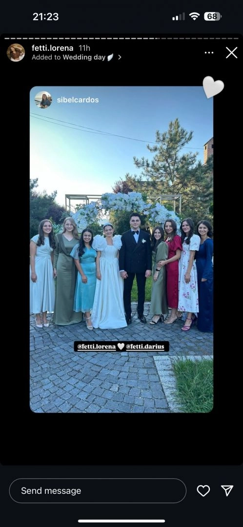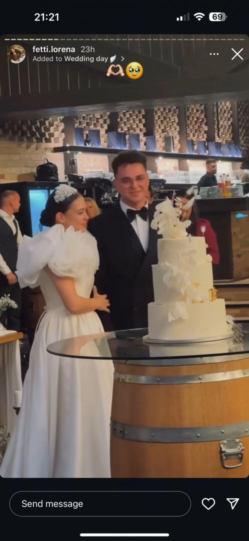 La nuntă, Lorena Buble (21 de ani) a purtat o rochie albă, cu mâneci bufante şi un buchet de trandafiri albi, în timp ce alesul inimii sale, Darius, a fost îmbrăcat într-un costum negru, clasic.