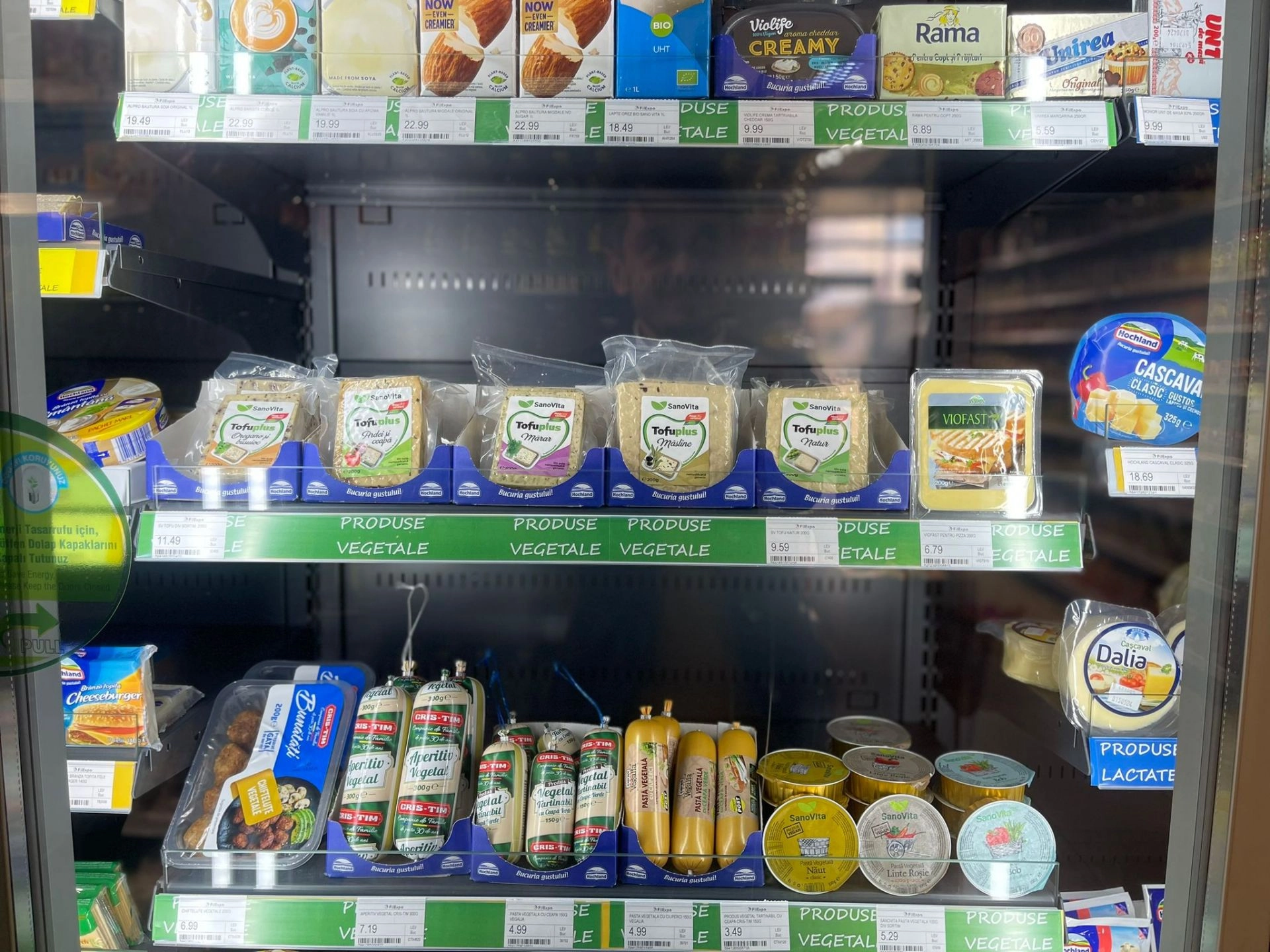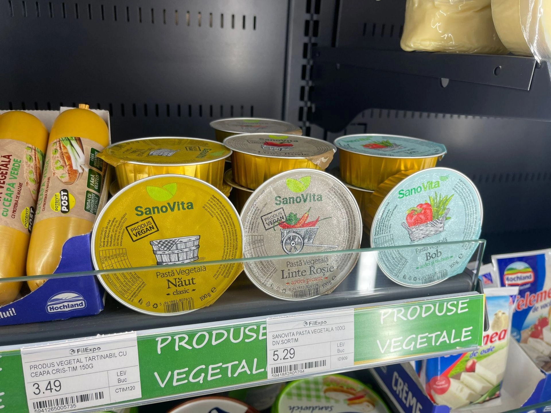 Vă prezentăm astăzi câteva produse de post care merită încercate şi care nouă ne-au atras atenţia. Începem cu mâncarea din vitrina frigorifică, sectorul produselor vegetale. Poate părea un aliment "de fiţă", după denumire, dar tofu este o brânză din boabe de soia, foarte bună la gust, dar, mai ales, sănătoasă, pentru că nu conţine colesterol, fiind bogată în proteine, fier şi calciu. În vitrina de la Filexpo, am găsit diverse sortimente de brânză TOFU (cu busuioc, oregano, mărar, măsline sau simplă), la preţ foarte avantajos (de la 9.59 lei - 200 de grame).