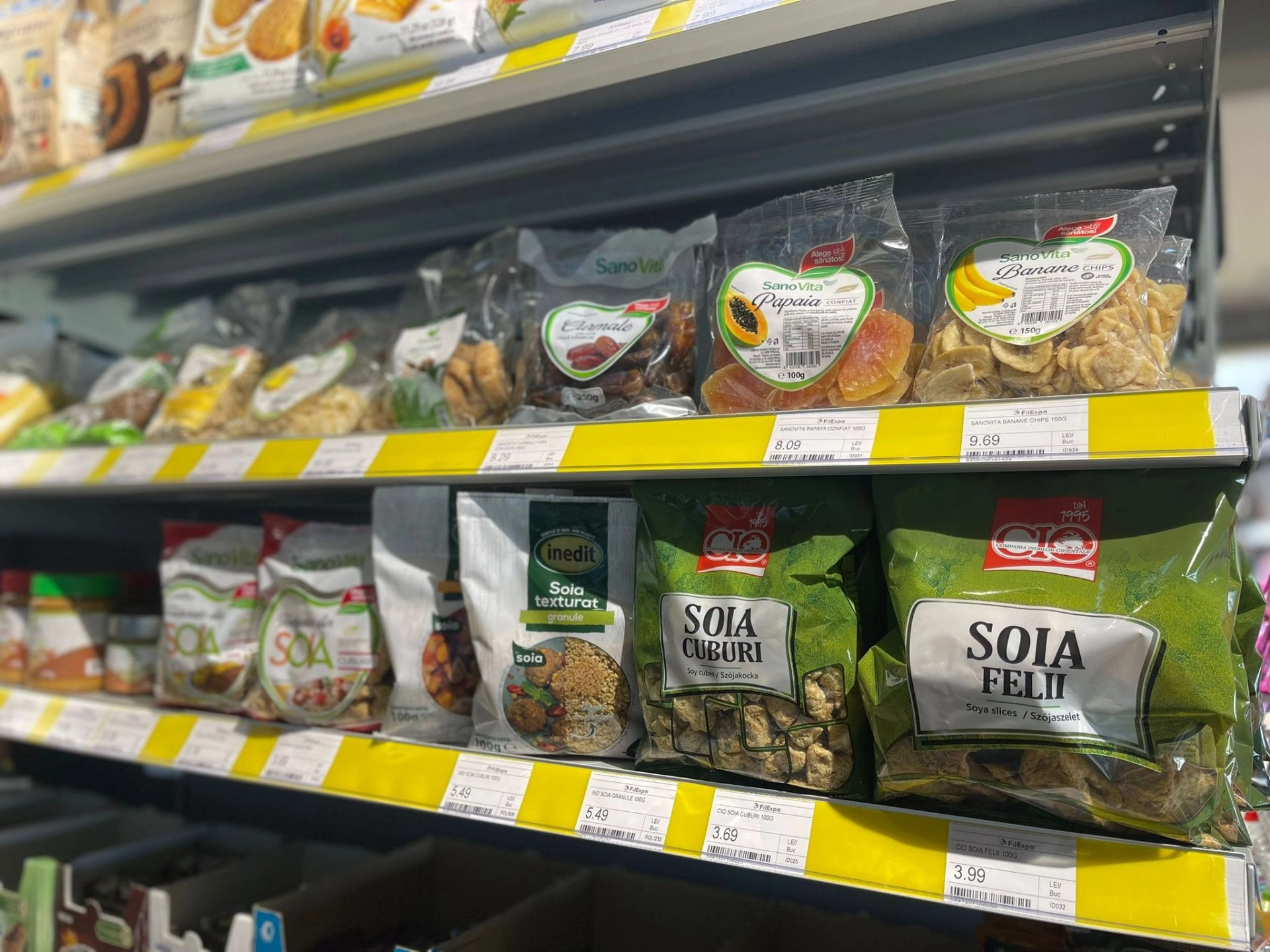 Pasionaţii de gătit mâncare de post sunt aşteptaţi la raftul cu produse de soia: cuburi, texturat sau în felii, pentru sarmale, şniţele sau tocăniţe. Şi, pentru o gustărică, găseşti fructe uscate, cum ar fi bananele, curmalele, papaya sau smochinele.