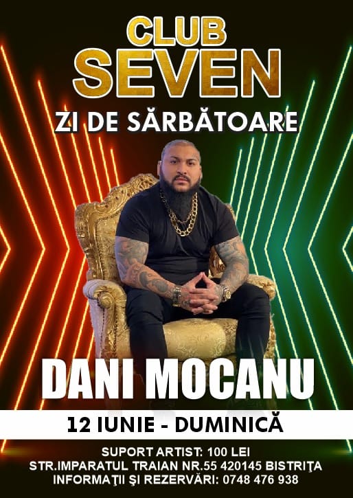 Cântărețul de manele Dani Mocanu va concerta la Bistrița. Concertul va avea loc în data de 12 iunie (duminică), în Club Seven, de pe str. Împăratul Traian.