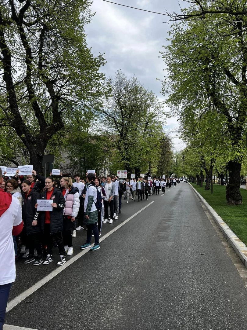 Marș împotriva consumului de droguri, pe străzile Bistriței. Peste 600 de copii și sportivii Gloriei au participat (FOTO)
