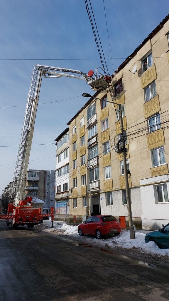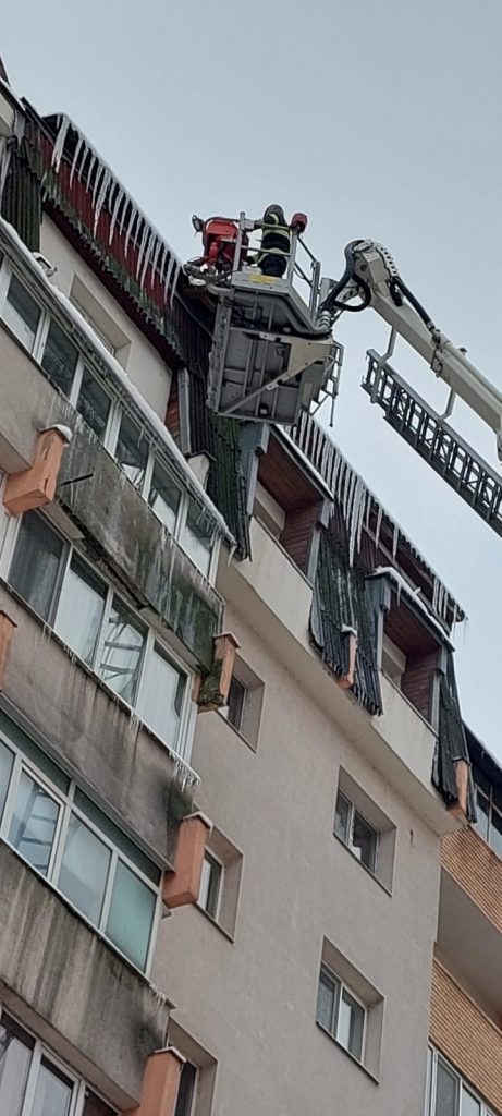 Misiunile pompierilor bistrițeni din ultimele 24 de ore. Au intervenit pentru îndepărtarea țurțurilor de gheață de la blocuri (FOTO)