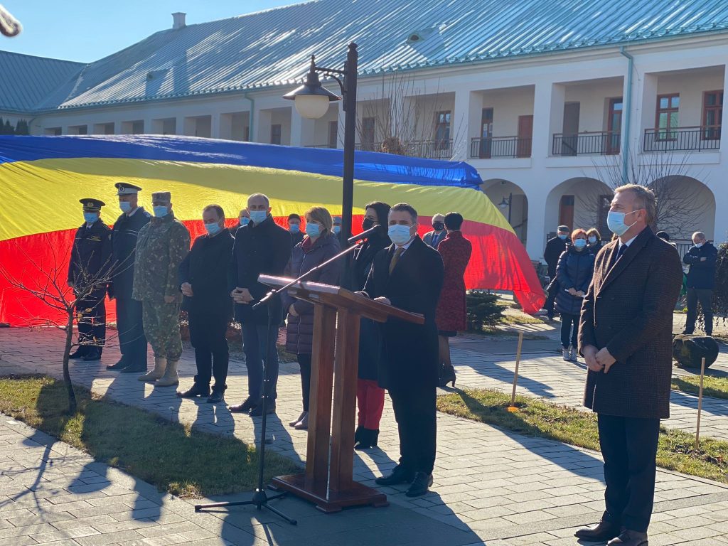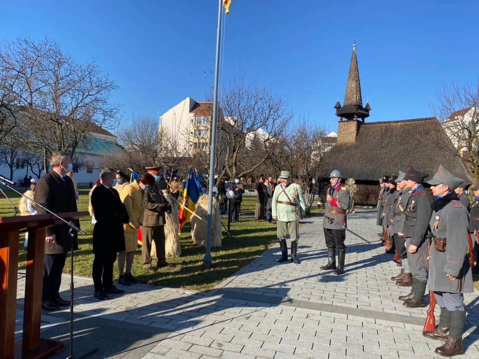 “După cum spun documentele epocii, la prima oră a acelei zile, vreo 400-500 de membri ai Gărzii Naționale Române, în frunte cu comandantul lor, dr. George Triff, cu ofițeri români, fruntași și mult popor, au fost prezenți în curtea cazarmei de honvezi a armatei austro-ungare (actuala locație a muzeului) și au intonat “Pe-al nostru steag”, un mic preambul al Marii Uniri din 1 Decembrie ce urma să se înfăptuiască. Gest temerar al înaintașilor noștri bistrițeni, care a fost consfințit apoi prin prezența tuturor la Biserica Română, cu tricolorul la chipie și butonieră. Un moment istoric ce a meritat rememorat astăzi, mai ales că nu toate faptele de eroism ale predecesorilor au ajuns să fie cunoscute de publicul larg. Cântecul patriotic al lui Ciprian Porumbescu, fredonat atunci, ne oferă și azi certitudinea că E SCRIS UNIRE PE-AL NOSTRU STEAG!”, a transmis primarul Bistriței, Ioan Turc, prezent la eveniment.