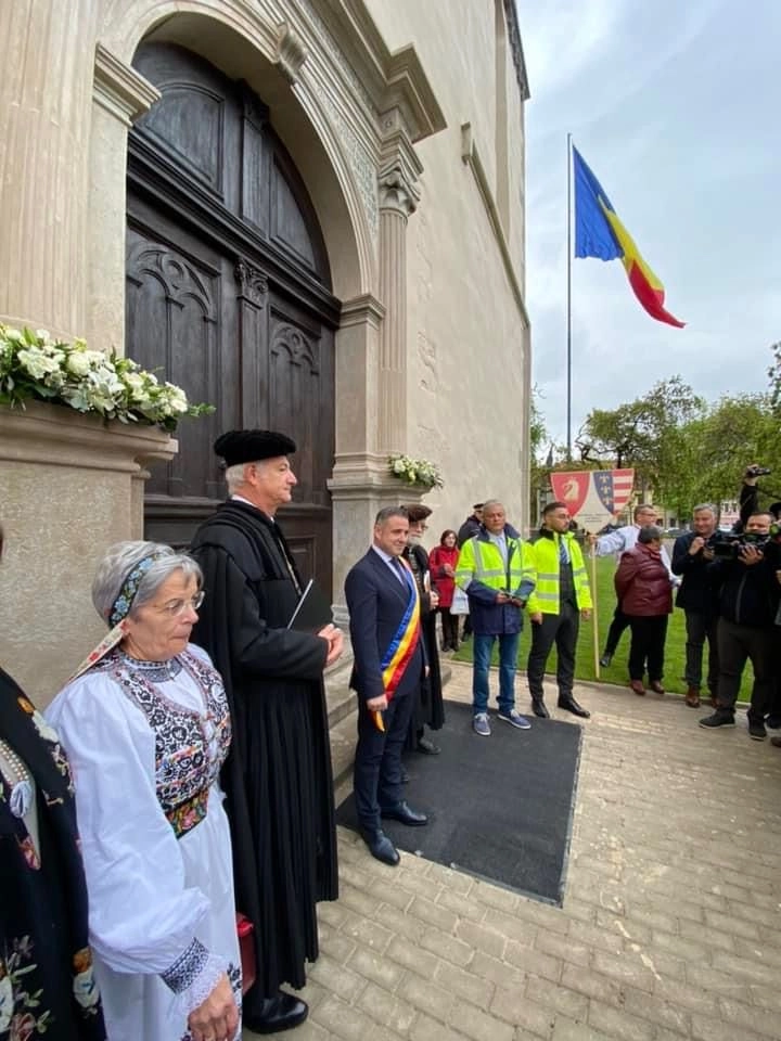 ”Am asistat plin de emoție și de bucurie la slujba solemnă de resfințire a celui mai grandios edificiu din orașul nostru – Biserica Evanghelică. În 11 iunie 2008, atunci când biserica a fost cuprinsă de flăcări, mă aflam în Piața Centrală și am văzut oameni în toată firea plângând. Consternării inițiale i-a urmat o perioadă de tristețe colectivă apăsătoare. Speranța s-a înfiripat din nou, odată cu finanțarea, la început timidă, a lucrărilor de restaurare. Acum, la capătul unui efort uriaș întins pe mulți ani de zile, biserica este mai frumoasă decât oricând”, a transmis primarul Ioan Turc.