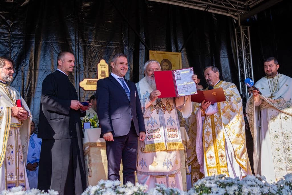 Ceremonia a inclus o slujbă de sfințire a Monumentului Eroilor, oficiată de Înaltpreasfințitul Părinte Andrei împreună cu un sobor de preoți, depunere de coroane de flori și defilarea gărzii de onoare.