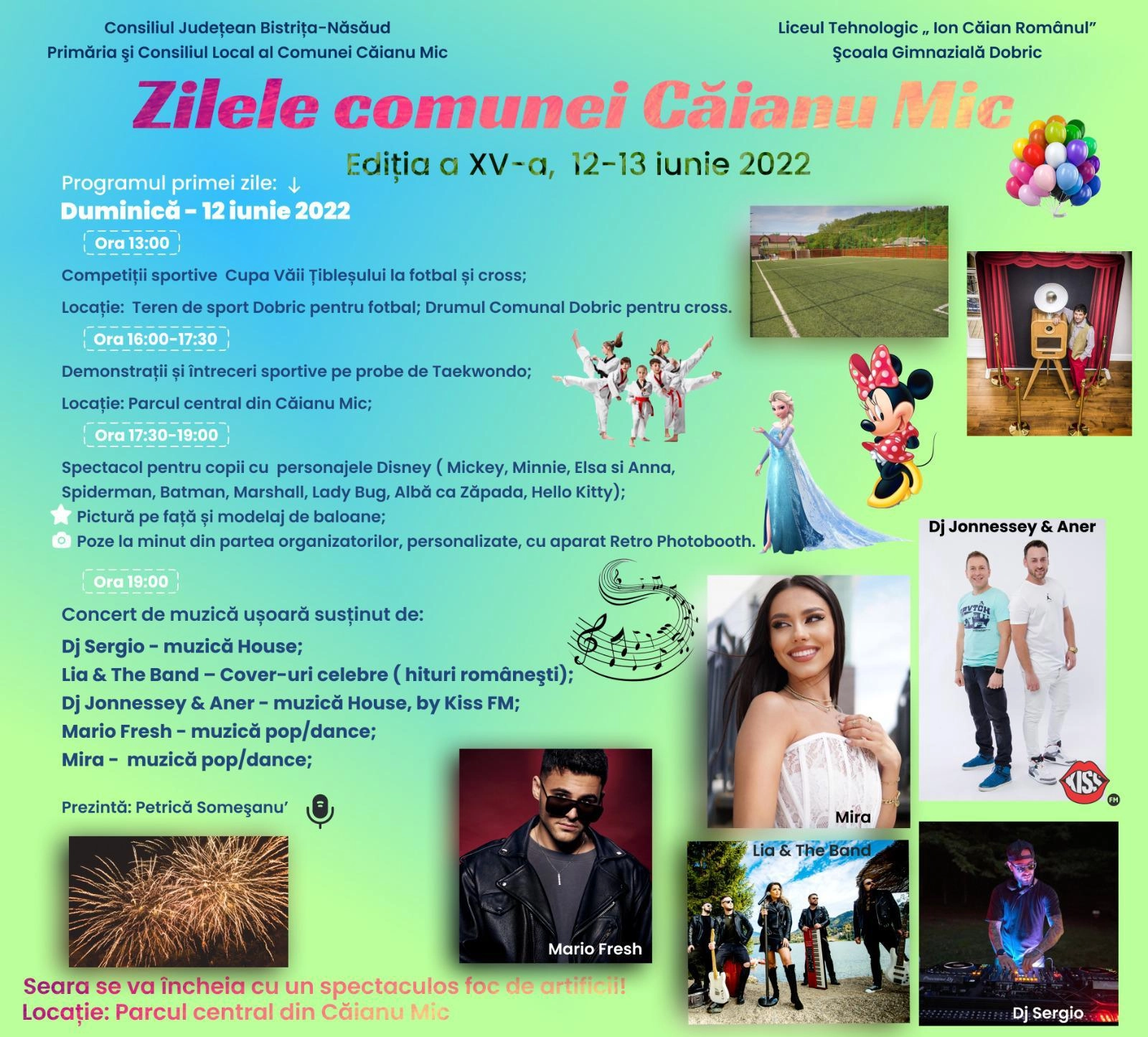 Zilele Comunei Căianu Mic vor avea loc în perioada 12-13 iunie, cu multe momente deosebite pentru locuitorii de pe Valea Țibleșului. Primarul comunei Căianu Mic, Paul Știr, a anunțat programul evenimentelor.