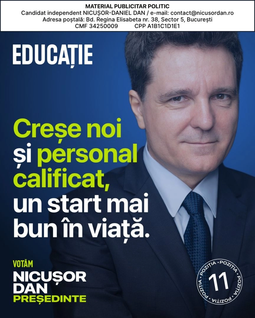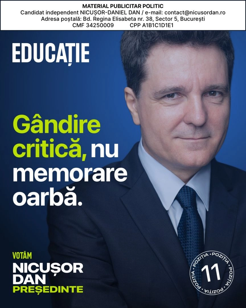 Nicușor Dan - candidat independent la președinția României: "Educația trebuie tratată ca o chestiune de siguranță națională. De calitatea școlii de azi depinde forța României de mâine – economică, democratică, culturală"