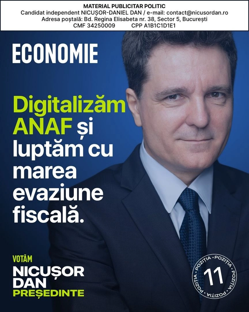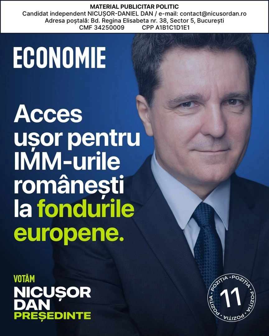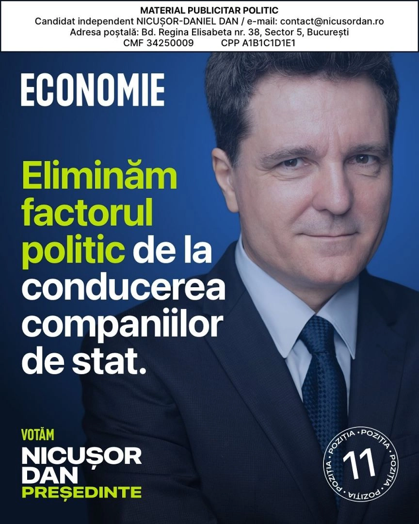 Nicușor Dan, candidat independent la președinția României: "Schimbăm statutul României în Europa: de la stat care urmează, la stat care propune! Reconstruim demnitatea colectivă printr-o economie puternică, în slujba interesului național."