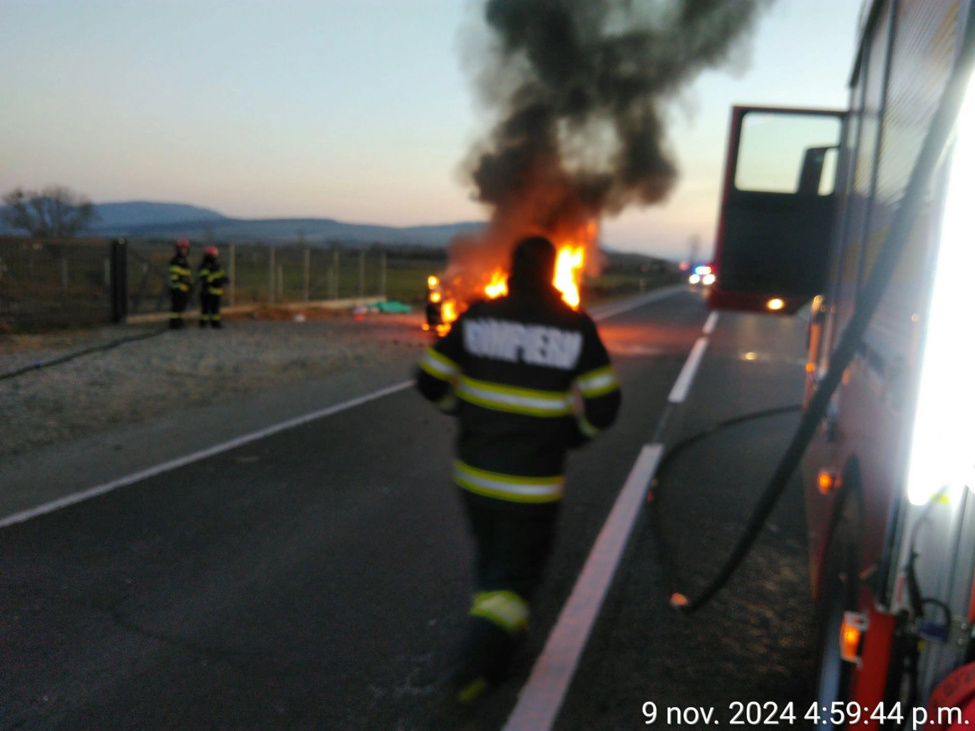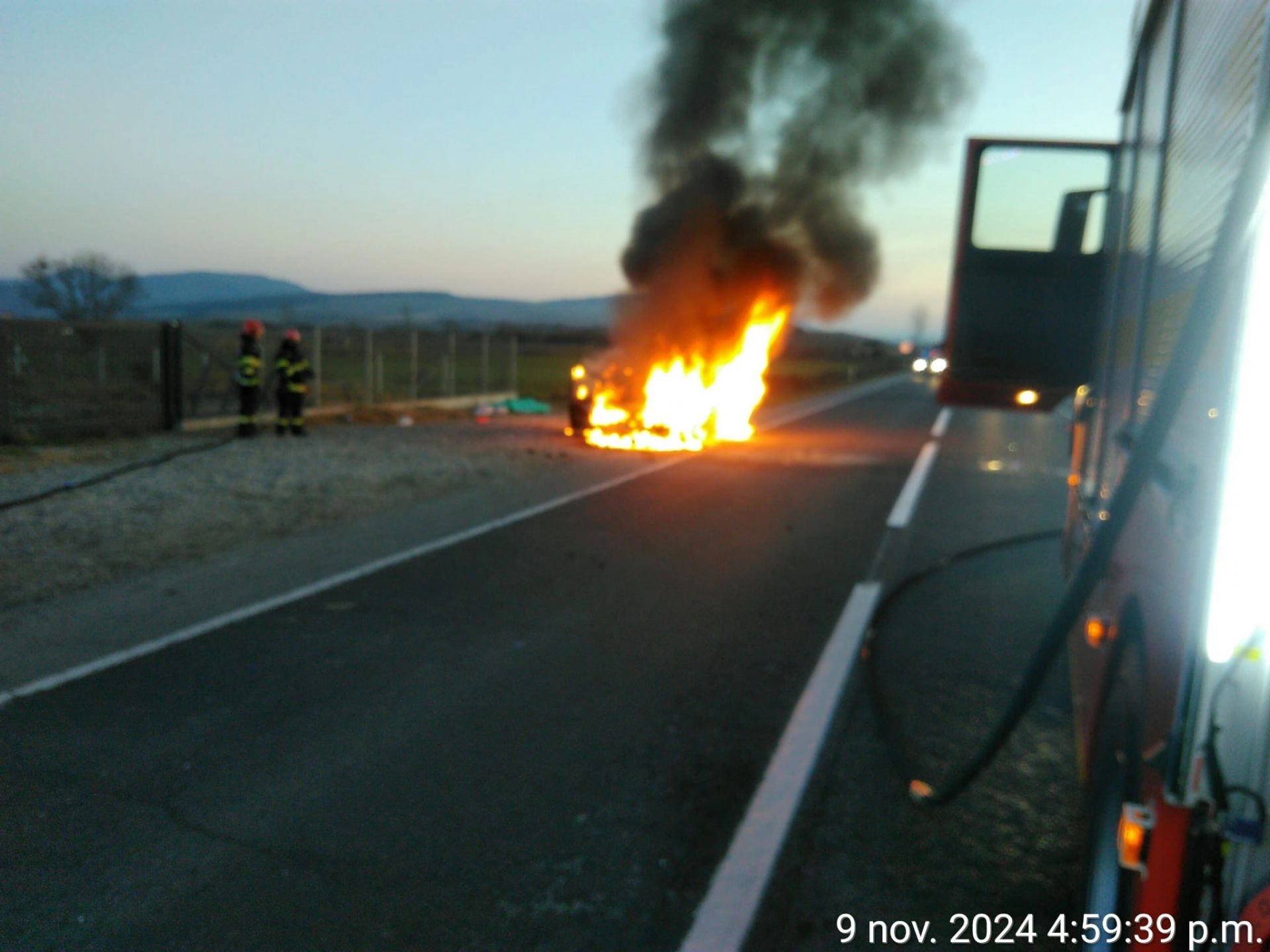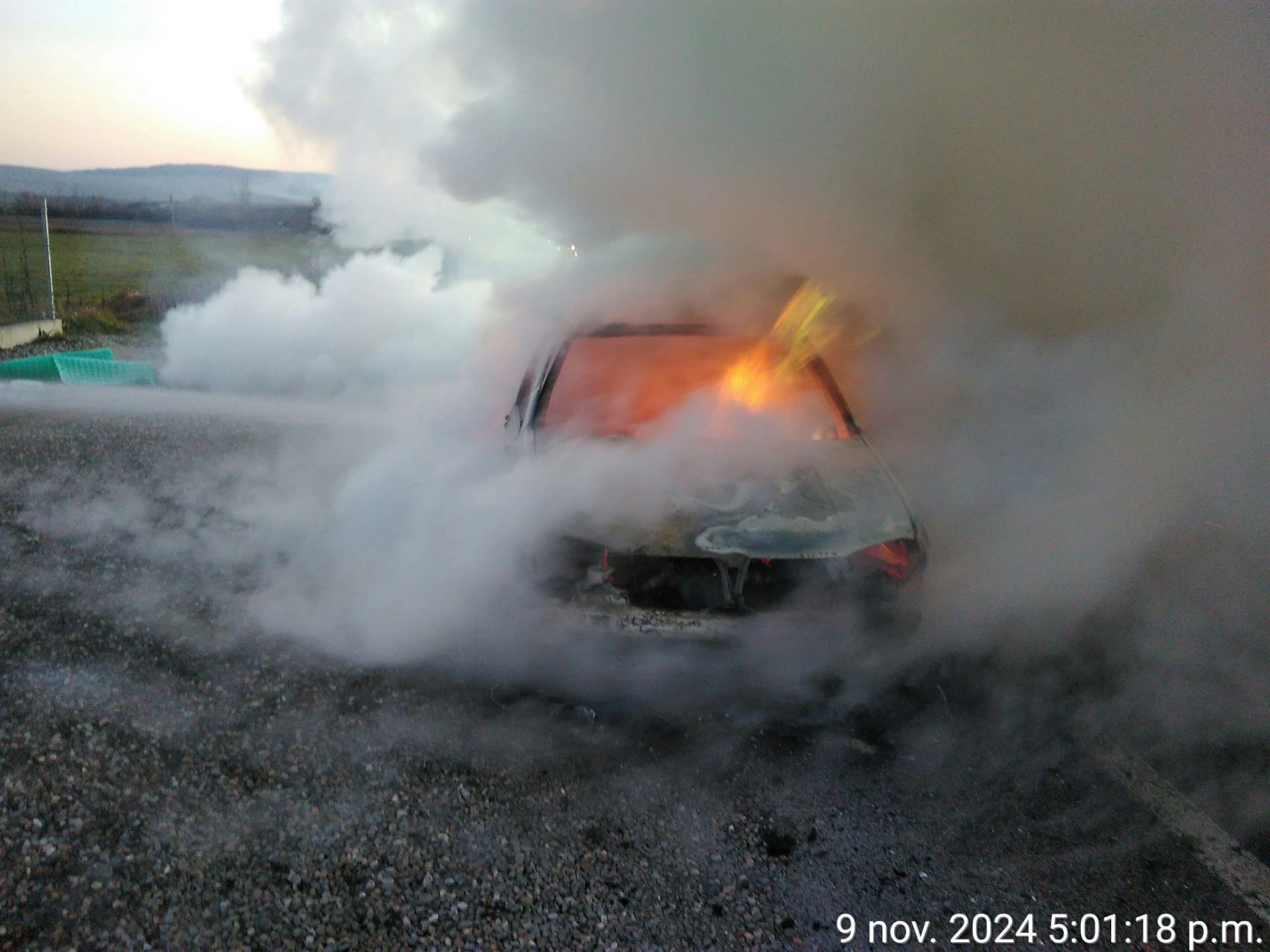 O mașină a luat foc și a ars ca o torță (FOTO)