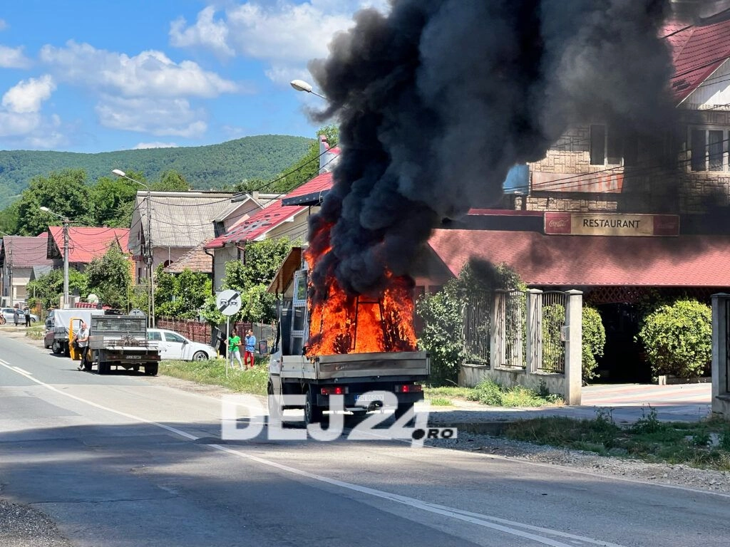 O mașină cu termopane, din Bistrița, a luat foc la ieșire din Dej