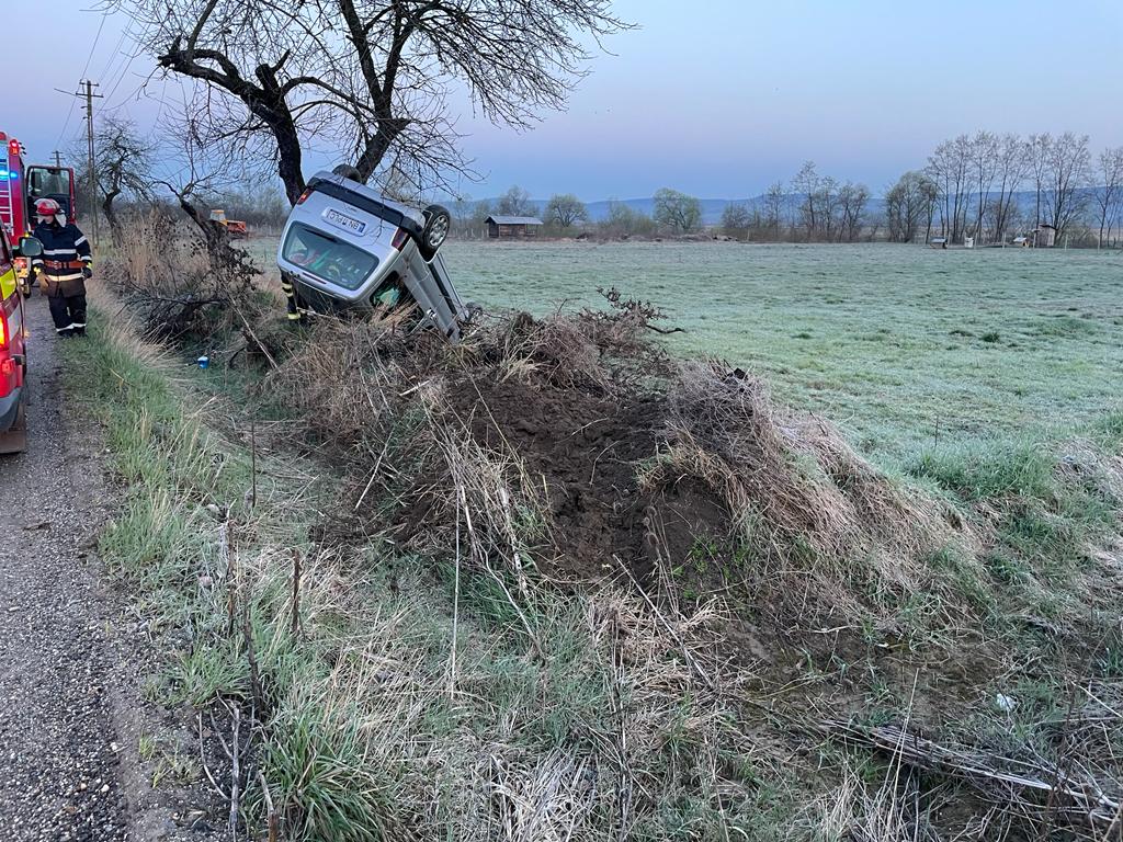 Din primele date, o femeie de 33 de ani, din Bistrița, în timp ce conducea un autoturism, a pierdut controlul și a intrat în coliziune cu un copac, după care s-a răsturnat.