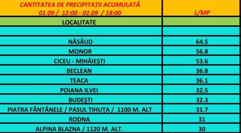 Ploi torențiale în Bistrița-Năsăud! În ce localități a plouat cel mai mult