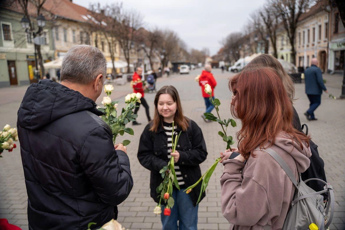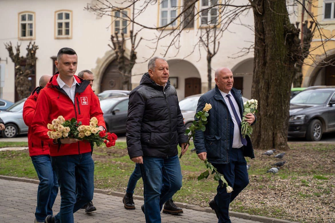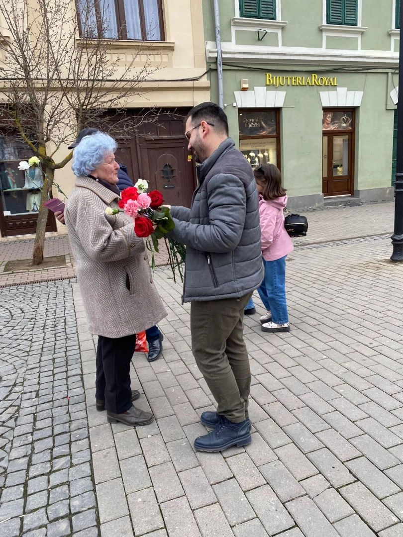 Deputatul Robert Sighiartău a oferit flori alături de primarul Năsăudului, Dorin Vlașin, în timp ce Cătălin Bota, primarul din Sângeorz Băi a ieșit și el cu flori pe străzile orașului-stațiune.