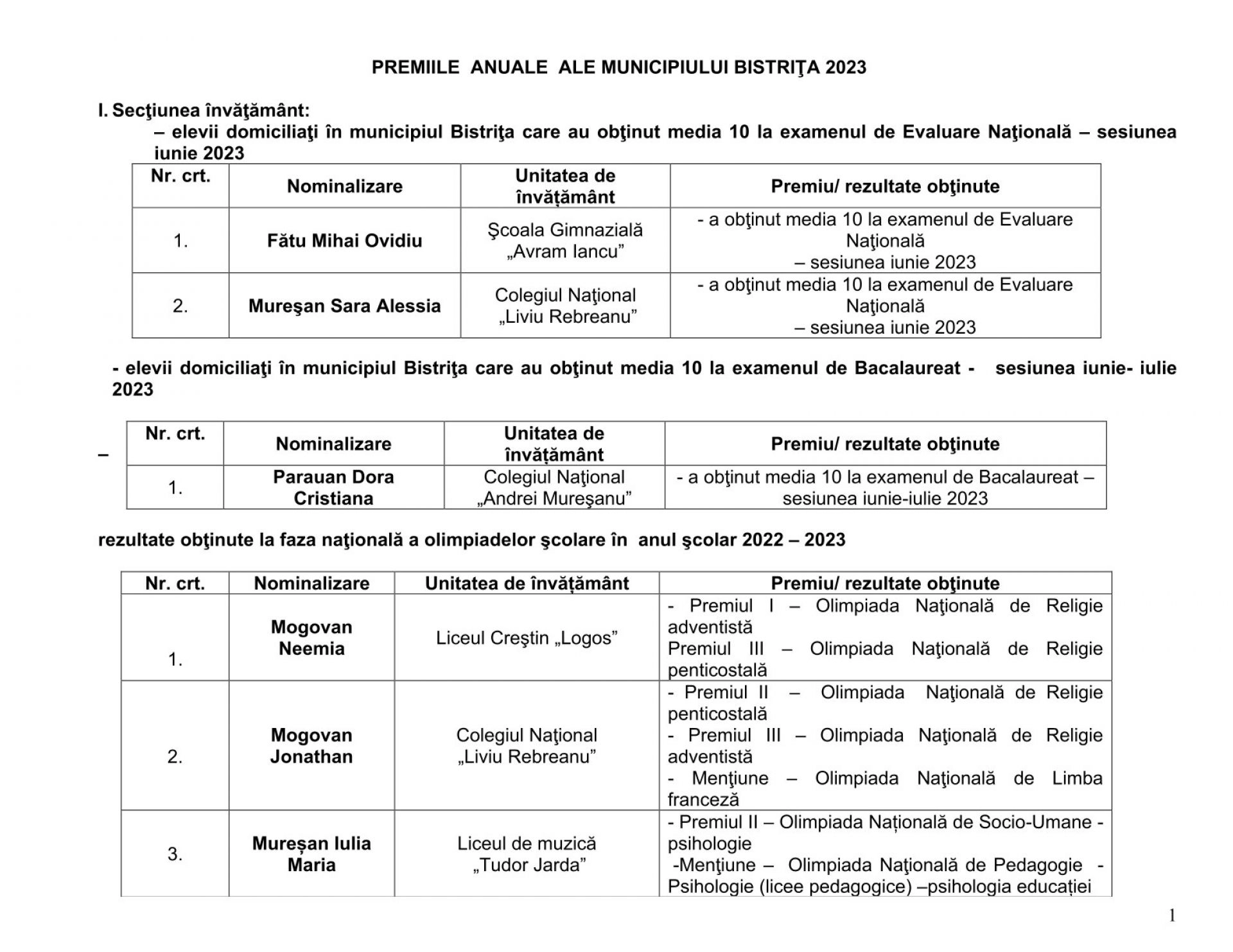 Premiile Municipiului Bistriţa au fost decernate (FOTO)
