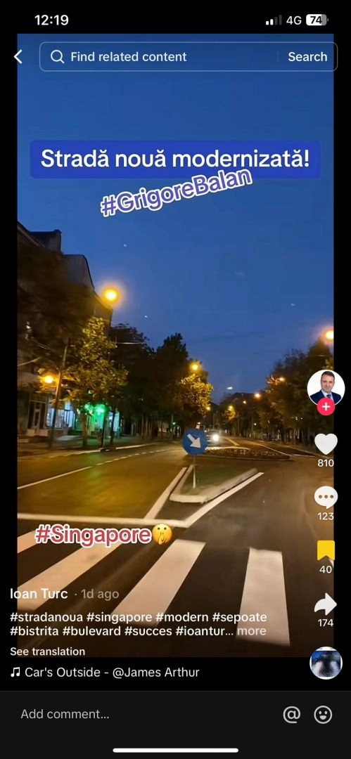 Primarul Ioan Turc "trolează" PSD-ul pe tik-tok. Video cu o stradă asfaltată și mesajul "Singapore"