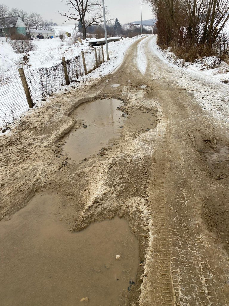 Mai mulți cetățeni de pe Valea Câstăilor din municipiul Bistrița ne-au transmis nemulțumirile legate de starea deplorabilă a drumului pe care merg acasă. După cum se vede și din fotografiile pe care le-am primit, drumul, care nu este asfaltat, arată foarte rău, cu gropi mari, care, spun oamenii, au rămas în urma mașinilor de mare tonaj.