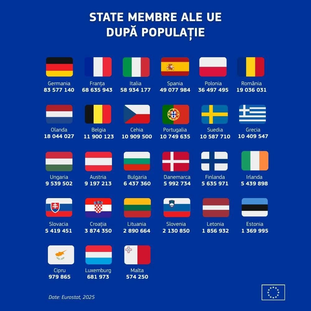 Când mă uit la harta Uniunii Europene și la cifrele de populație ale celor 27 de state membre, îmi dau seama că trăim într-un colos demografic de peste 450 de milioane de oameni. Un conglomerat uriaș, divers, fascinant și, în același timp, extrem de complicat. Știați că avem trei state cu peste 50 de milioane de locuitori – Germania, Franța și Italia – și trei state sub un milion – Cipru, Luxemburg și Malta? Discrepanțe uriașe, dar puse sub aceeași umbrelă politică, economică și legislativă.