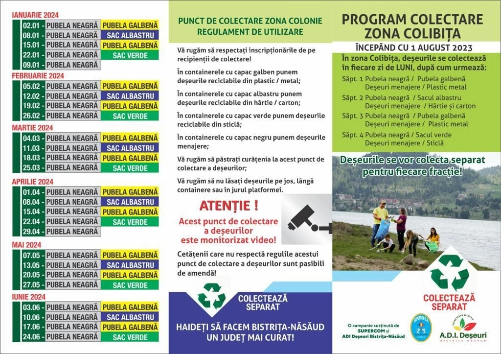 Anunțul a fost făcut de directorul executiv al ADI DEȘEURI, Cristian Niculae: ”De azi, 1 august 2023 modificăm Împreună cu Primăria Comunei Bistrița-Bârgăului și cu operatorul de salubritate Supercom SA am stabilit un nou calendar de colectare a deșeurilor, pentru a eficientiza lucrurile și pentru a veni în sprijinul cetățenilor din zonă dar și a turiștilor ce aleg să-și petreacă timpul liber în acest frumos loc al județului nostru.