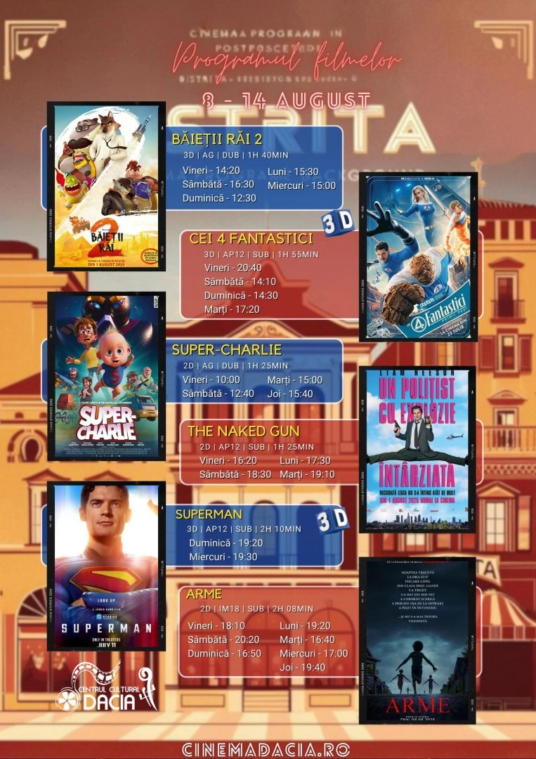 Programul filmelor de la Cinema Dacia, pentru perioada 8-14 august
