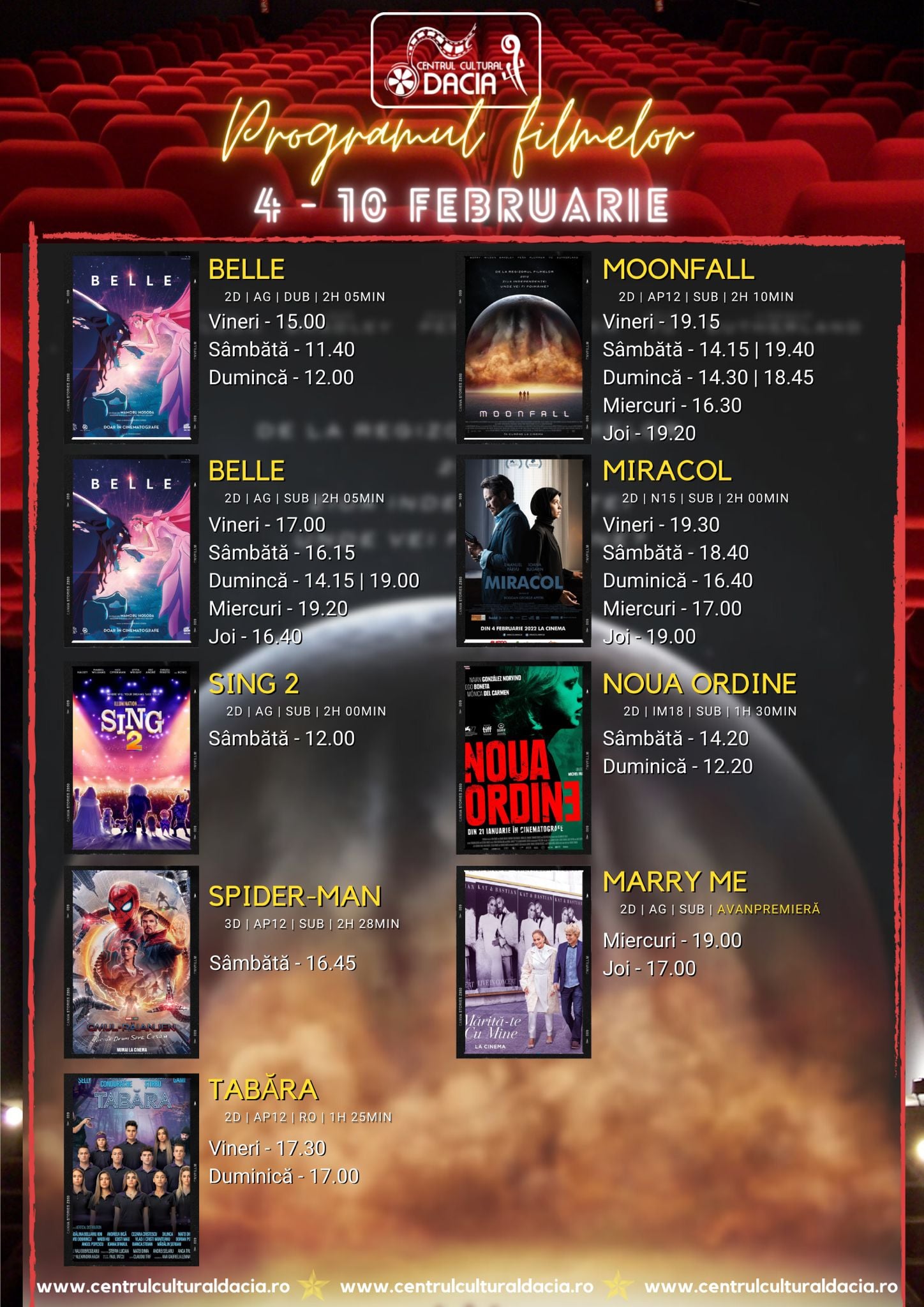 Programul filmelor din perioada 4-10 februarie Detalii și rezervări pe www.centrulculturaldacia.ro