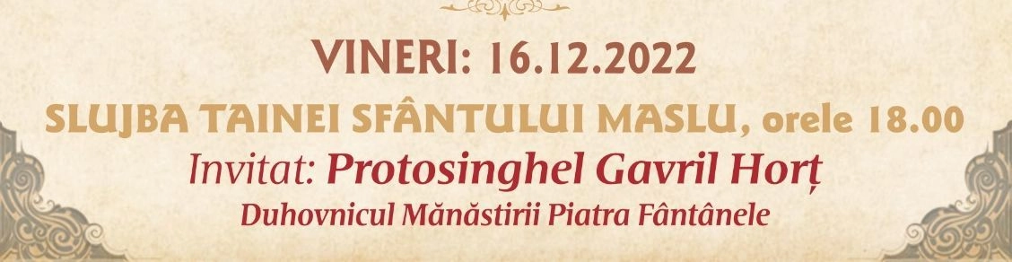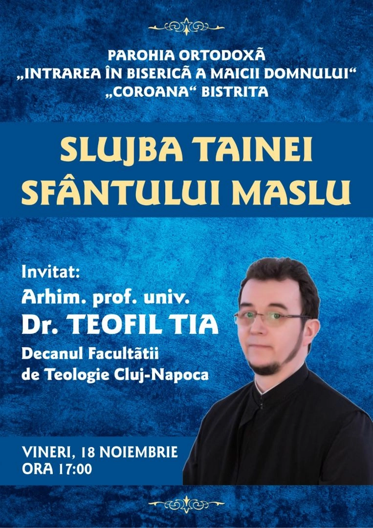 Creștinii ortodocși sunt așteptați la Serile Duhovnicești de la biserica ”Coroana” Bistrița, în fiecare zi de Vineri, începând cu ora 17.00.