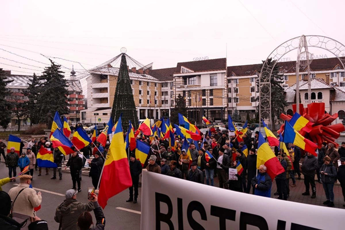 „Bistrițenii au protestat împotriva dictaturii regimului Iohannis-PSD-PNL și a tuturor abuzurilor acestui sistem, culminând cu anularea alegerilor libere și suspendarea democrației.