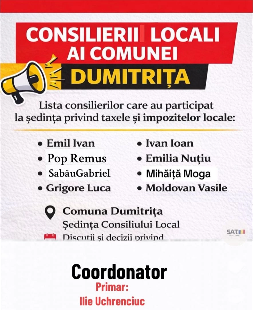 Cetățenii comunei Dumitrița se pregătesc să iasă în stradă pentru a-și exprima nemulțumirea față de decizia administrației locale de a majora taxele și impozitele locale. Prin acest protest, locuitorii doresc să atragă atenția asupra impactului pe care aceste creșteri îl vor avea asupra bugetelor familiilor din comună.