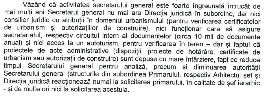 De la informarea secretarului, în care Floare Gaftone își cere înapoi "Direcția Juridică", dar și un consilier juridic cu atribuții în domeniul urbanismului. De asemenea, cererile mai vizează un funcționar care să se ocupe de circuitul intern al documentelor dar și un autoturism pentru teren, după cum reiese din document (vezi facsimil).