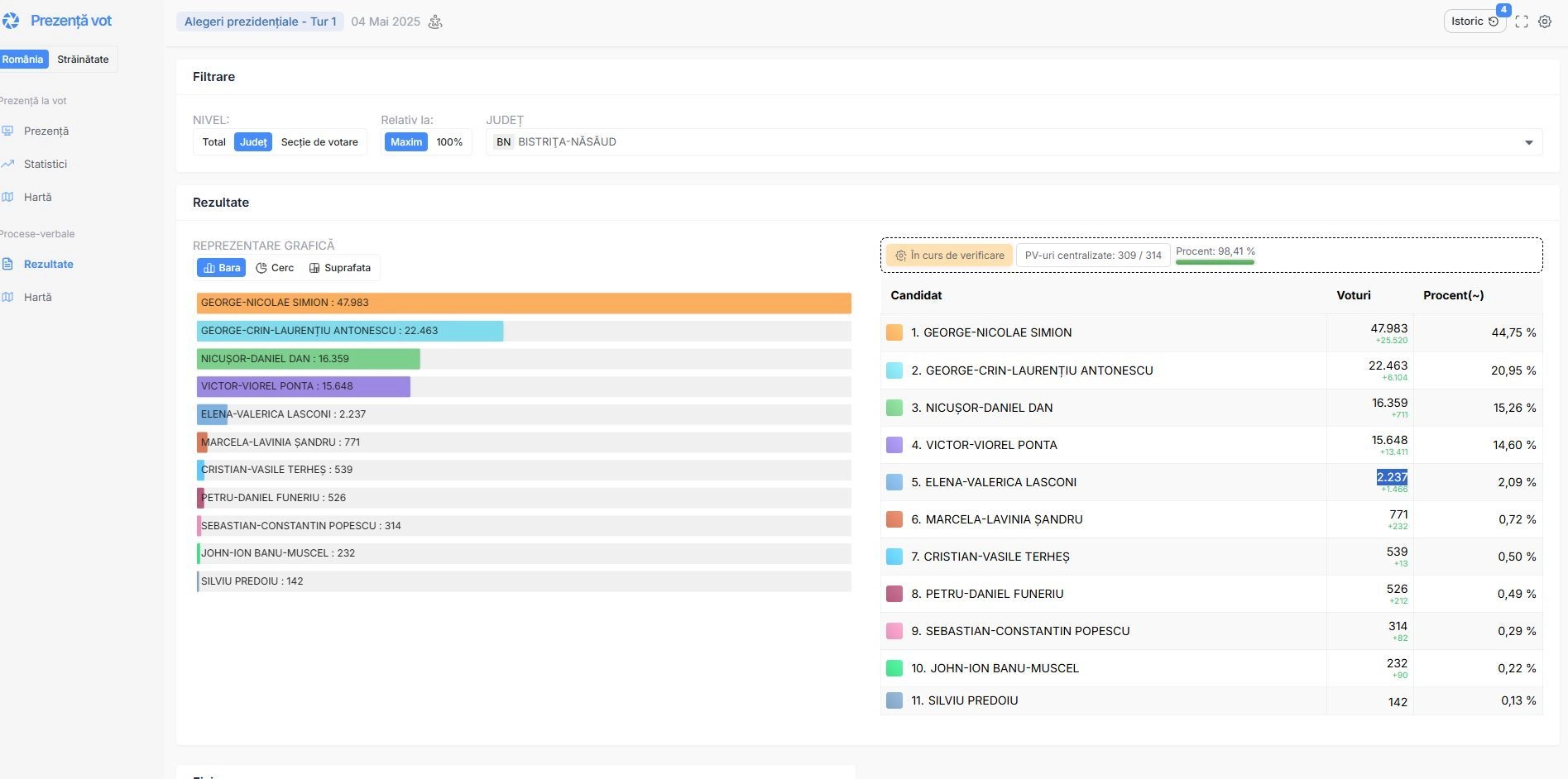 REZULTATELE alegerilor în Bistrița-Năsăud. George Simion conduce detașat