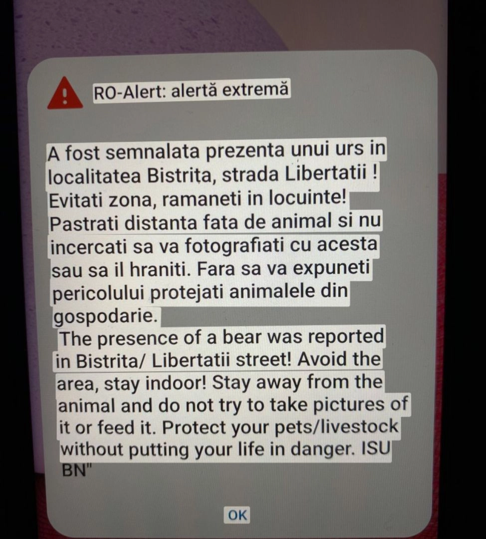 Ro-Alert! A fost semnalată prezența unui urs în Bistrița