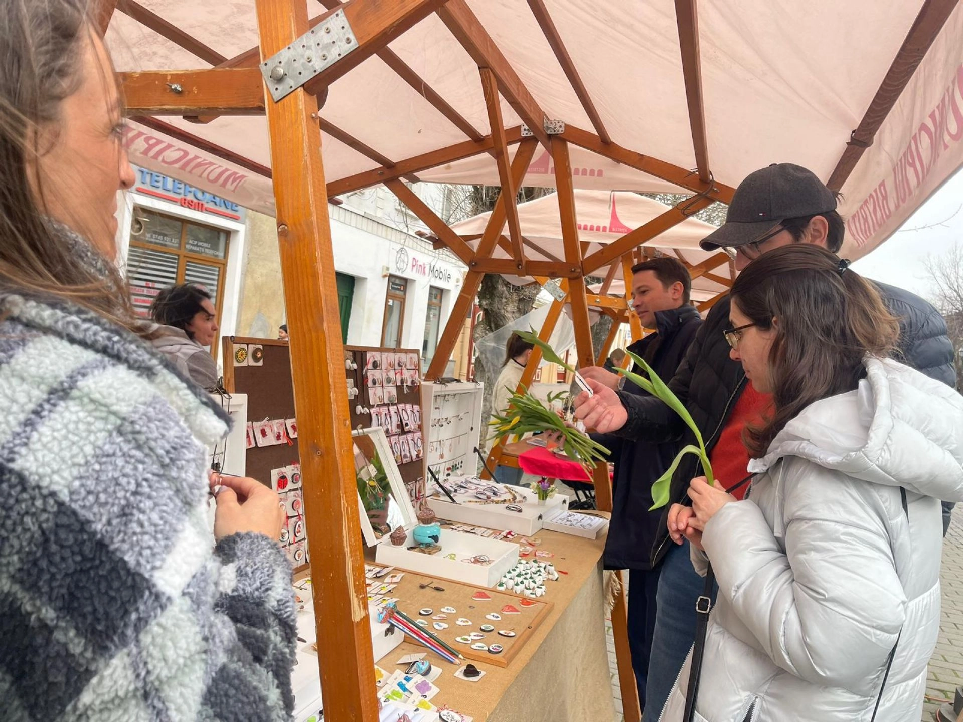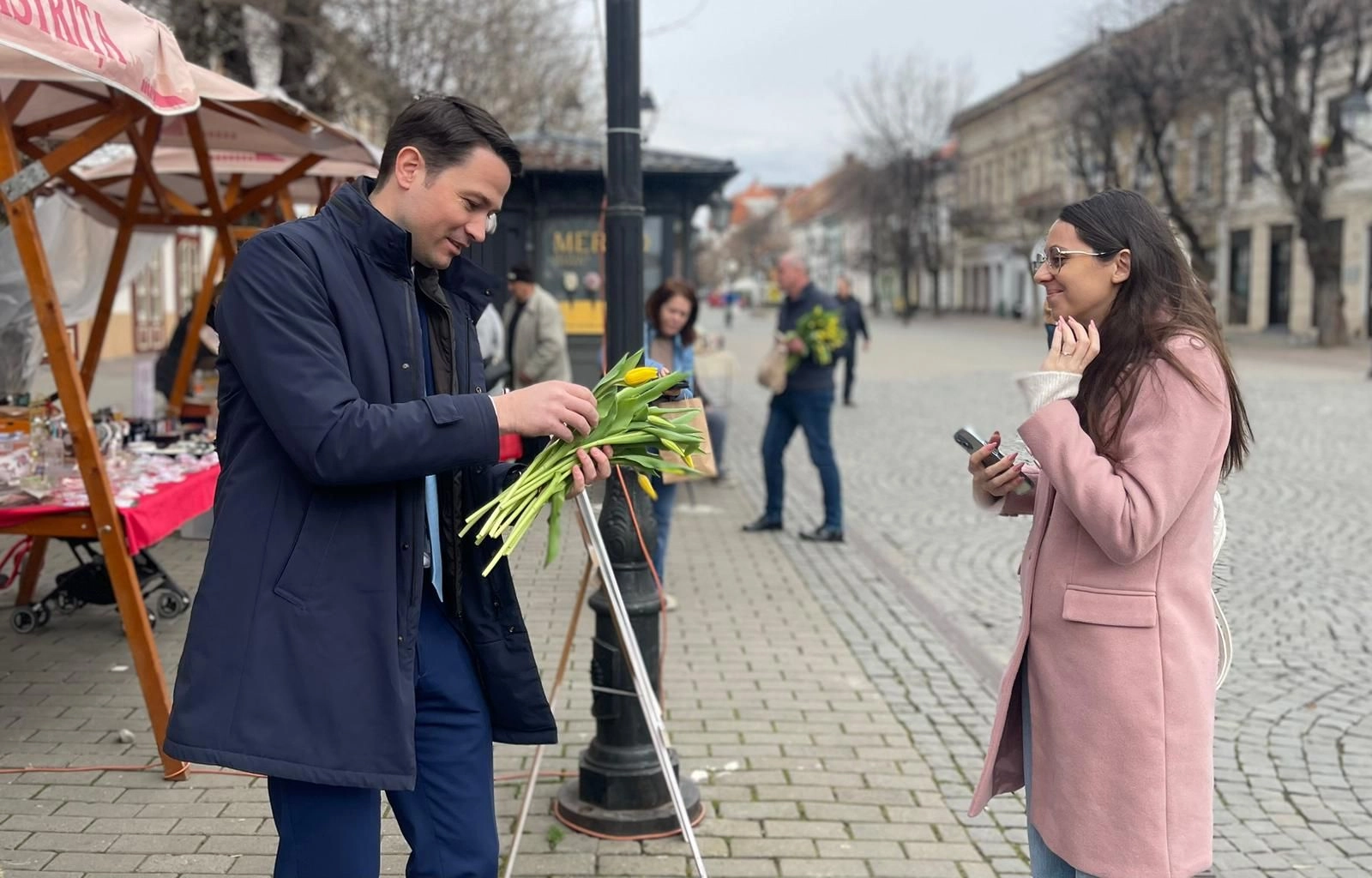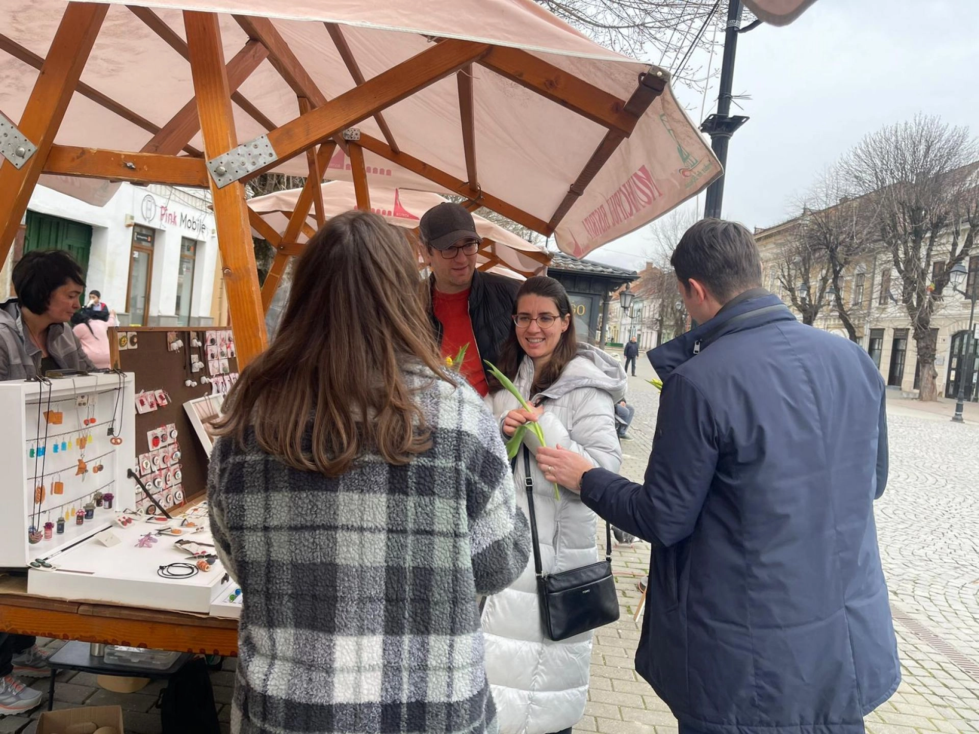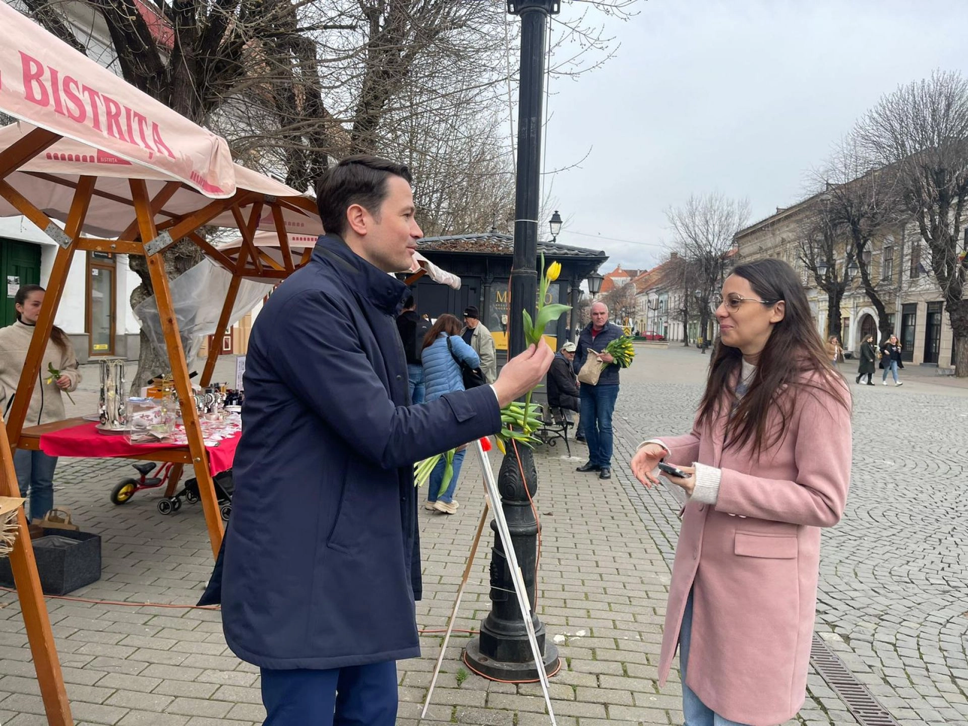 Robert Sighiartău le-a oferit flori doamnelor și domnișoarelor, pe pietonalul din Bistrița (FOTO)