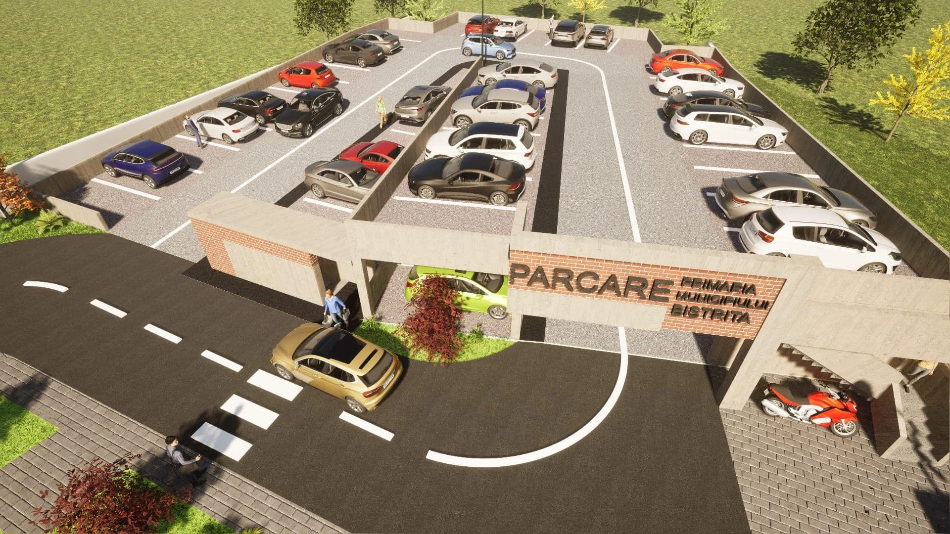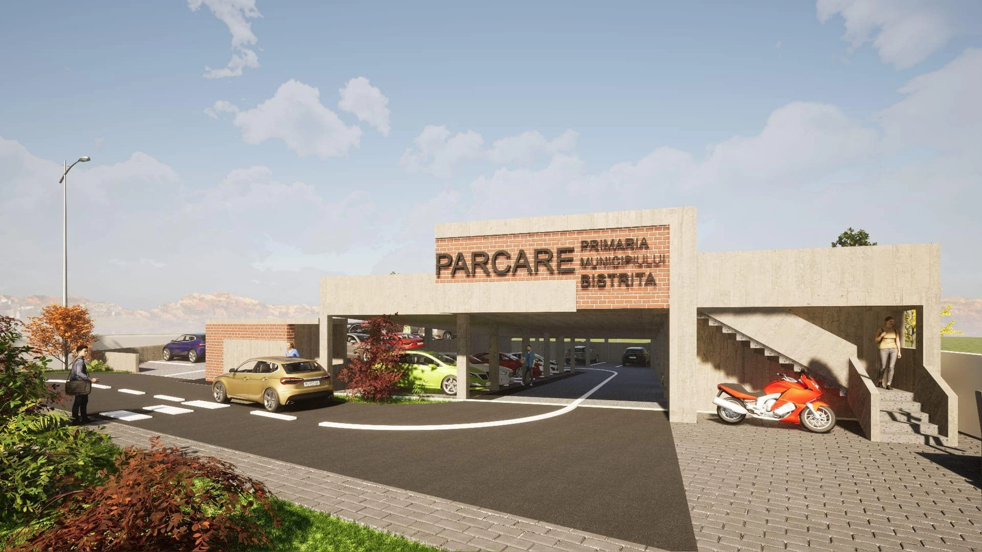 Proiectul presupune amenajarea unei parcări etajate în regim demisol + parter, oferind un număr de 90 de locuri de parcare inclusiv pentru persoane cu dizabilități, stații de încărcare vehicule electrice, spații verzi și mobilier urban, totul într-un concept estetic și funcțional modern.