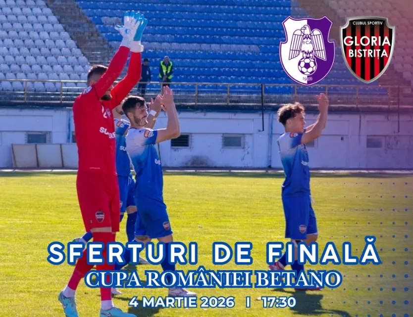 S-a stabilit când joacă Gloria cu FC Argeș, în sferturile Cupei României la fotbal.