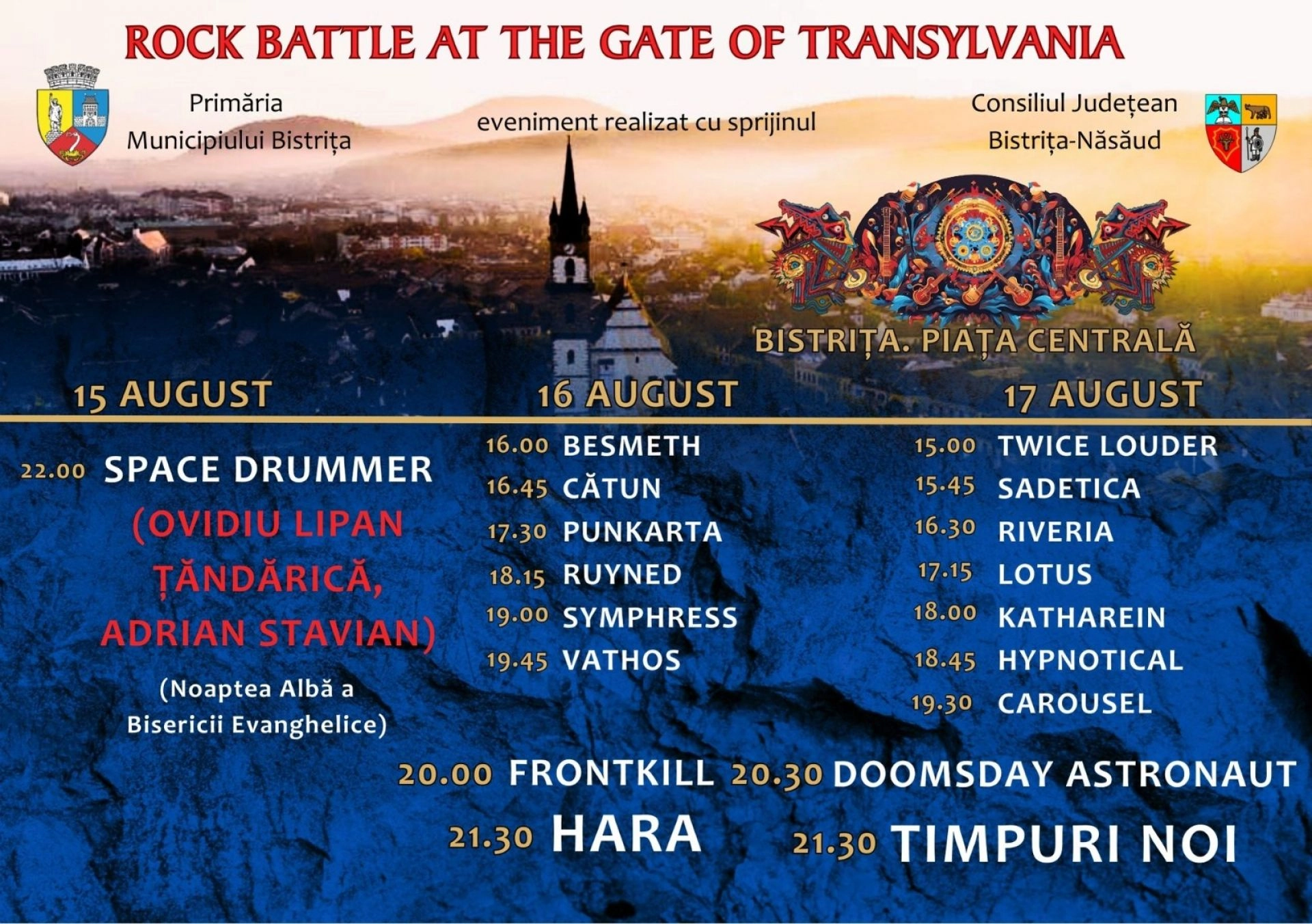 Bistrița devine, în acest weekend, epicentrul rock-ului românesc prin evenimentul Rock Battle – The Gate of Transylvania, realizat cu sprijinul Primăriei Bistrița și al Consiliului Județean Bistrița-Năsăud, prin Centrul Județean pentru Cultură Bistrița-Năsăud. Evenimentul este cu intrare liberă.