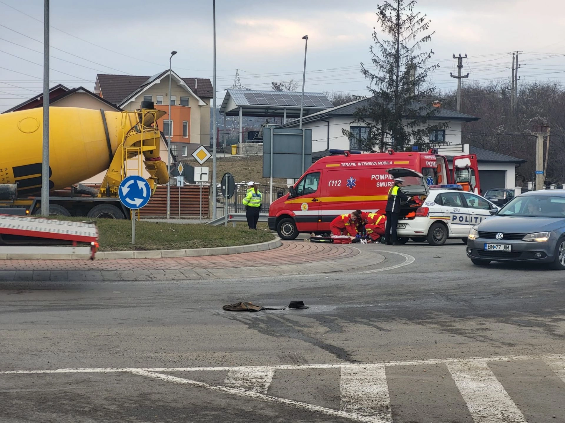 Scene dramatice! Un bărbat a murit după ce a fost lovit de o betonieră, în Bistrița (FOTO)
