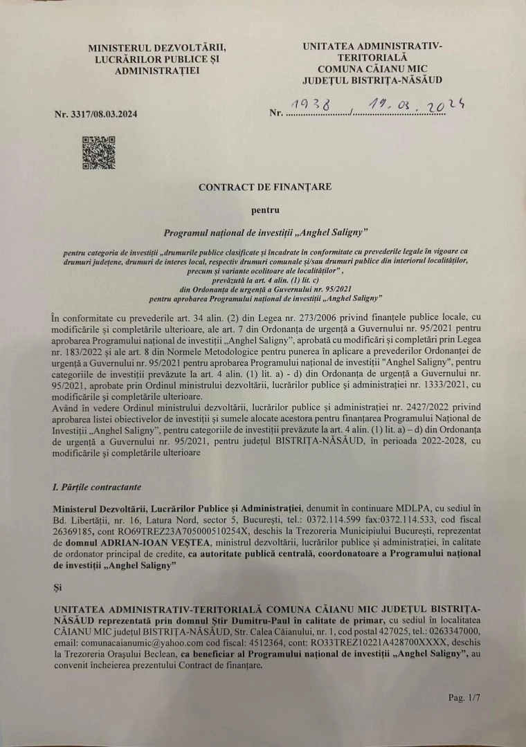 8,7 kilometri de drumuri se vor mai asfalta în comuna Căianu Mic. Contractul de finanțare a fost semnat.