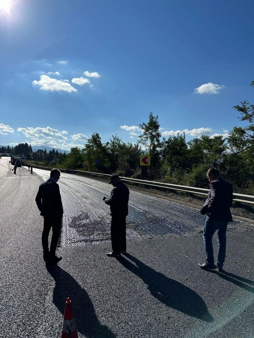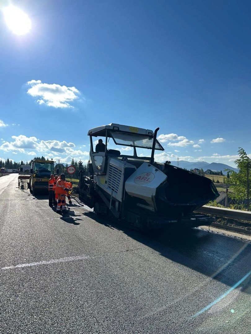 Se toarnă asfalt pe DN 17, în Pasul Tihuţa (FOTO)