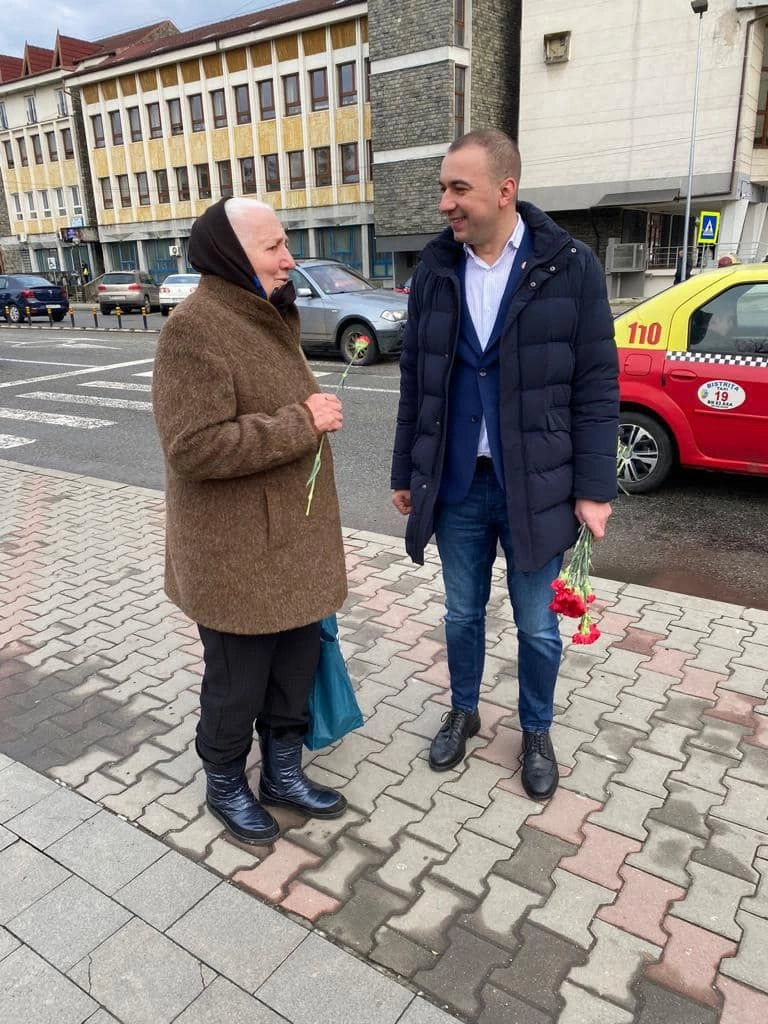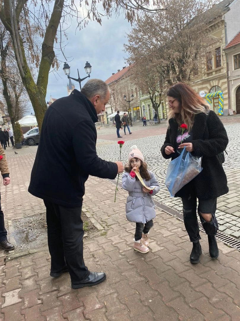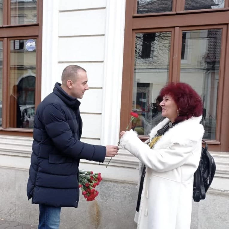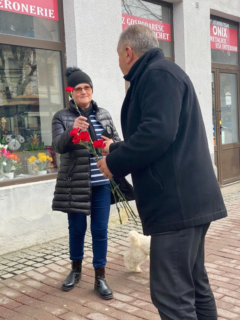 Social-democrații bistrițeni le-au oferit flori doamnelor și domnișoarelor din Bistrița (FOTO)