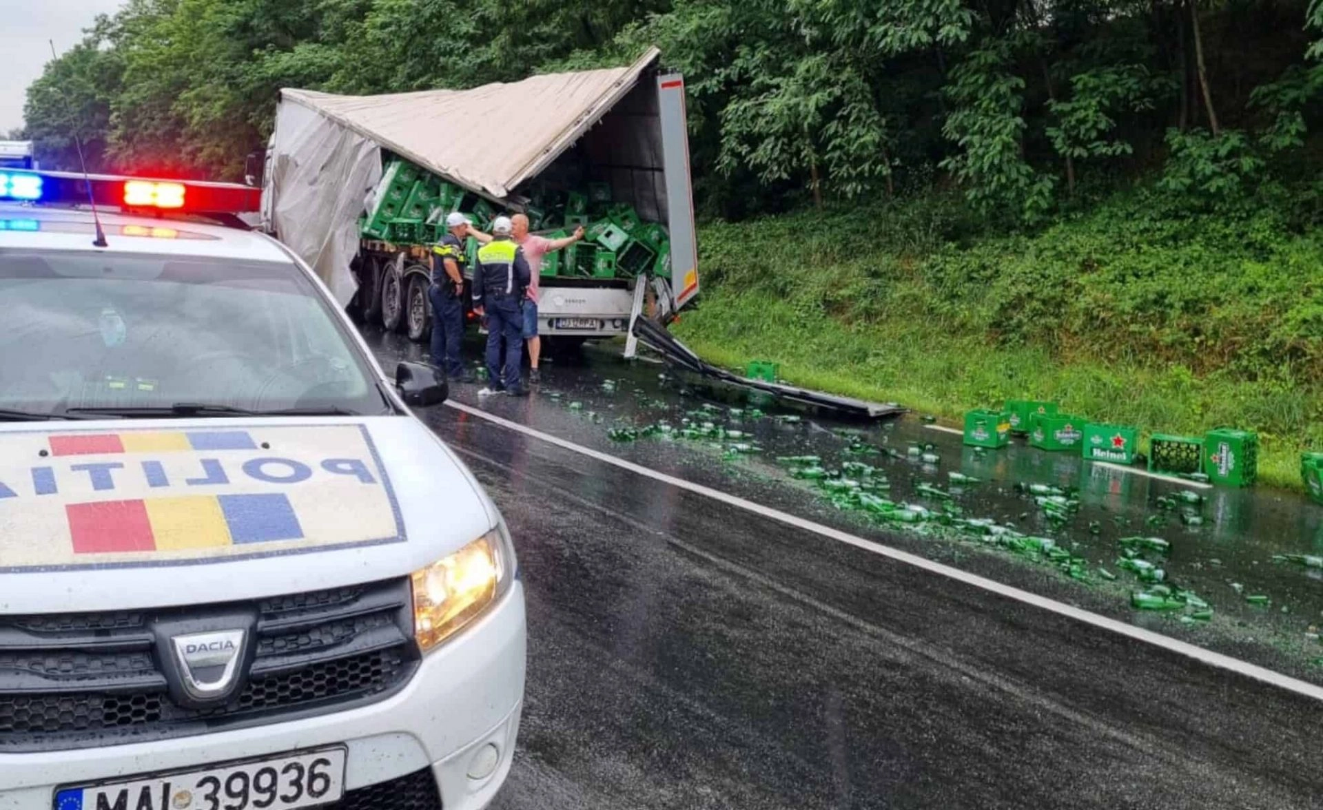 Este vorba despre o coliziune între un autocar, condus spre Sibiu de către un bărbat în vârstă de 33 de ani, din județul Bistrița-Năsăud și un ansamblu rutier condus spre Brașov de către un bărbat în vârstă de 51 de ani, din județul Dolj.