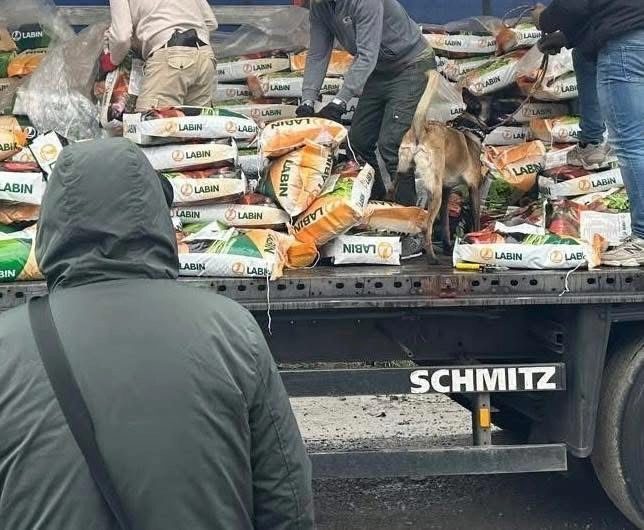 Din cauza suspiciunilor, polițiștii au decis să efectueze un control amănunțit al vehiculului și au solicitat intervenția unei echipe canine antidrog. Un câine din rasa Malinois, specializat în depistarea stupefiantelor, a semnalat cu insistență capul tractorului. În urma verificărilor, anchetatorii au descoperit peste 100 de kilograme de cocaină, ascunse între căptușeală și caroserie.