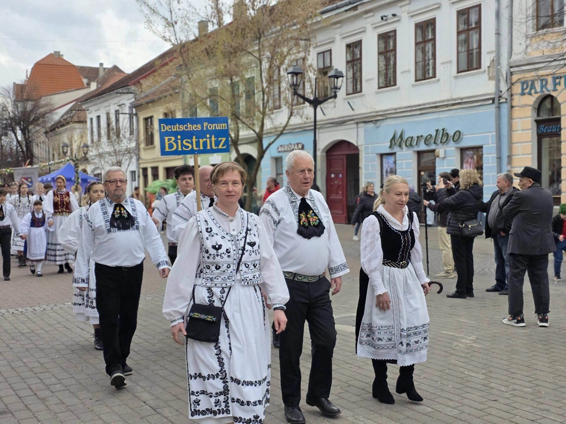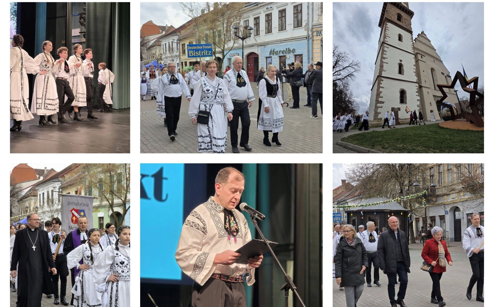 Parada costumelor tradiționale săsești a avut loc afară, în centrul orașului, la eveniment fiind prezent și primarul Gabriel Lazany. Apoi, din cauza vremii, spectacolele s-au mutat la Palatul Culturii.