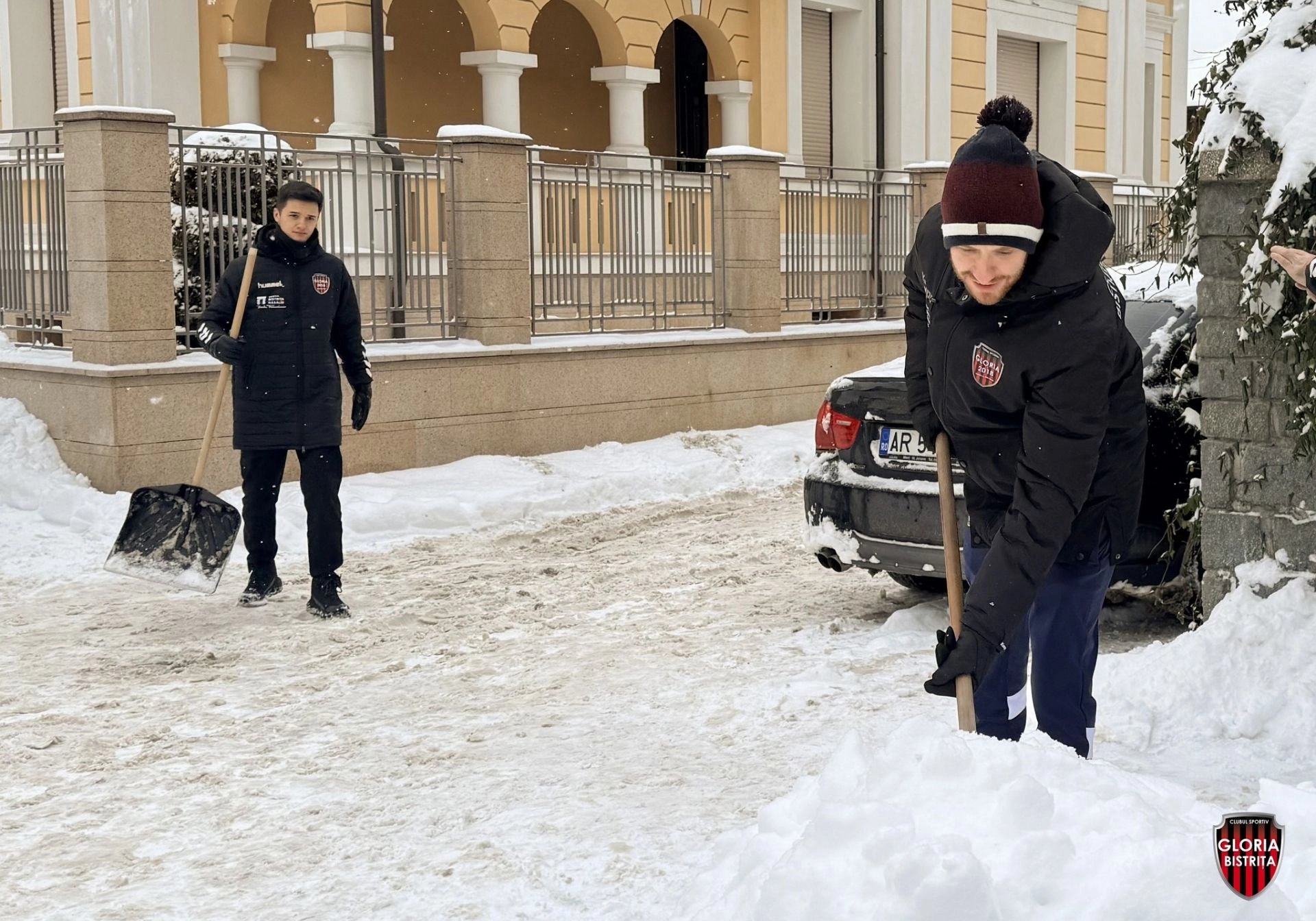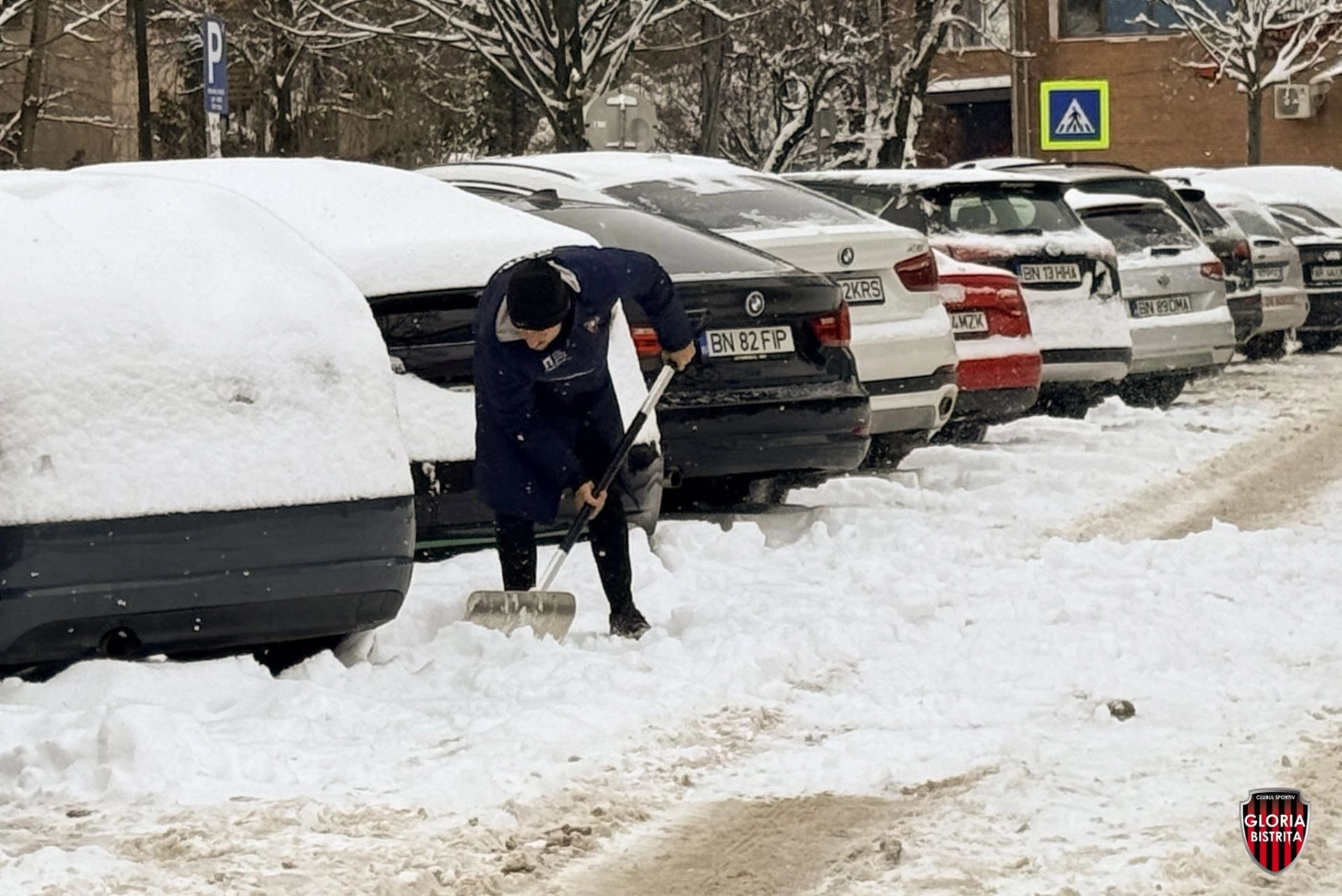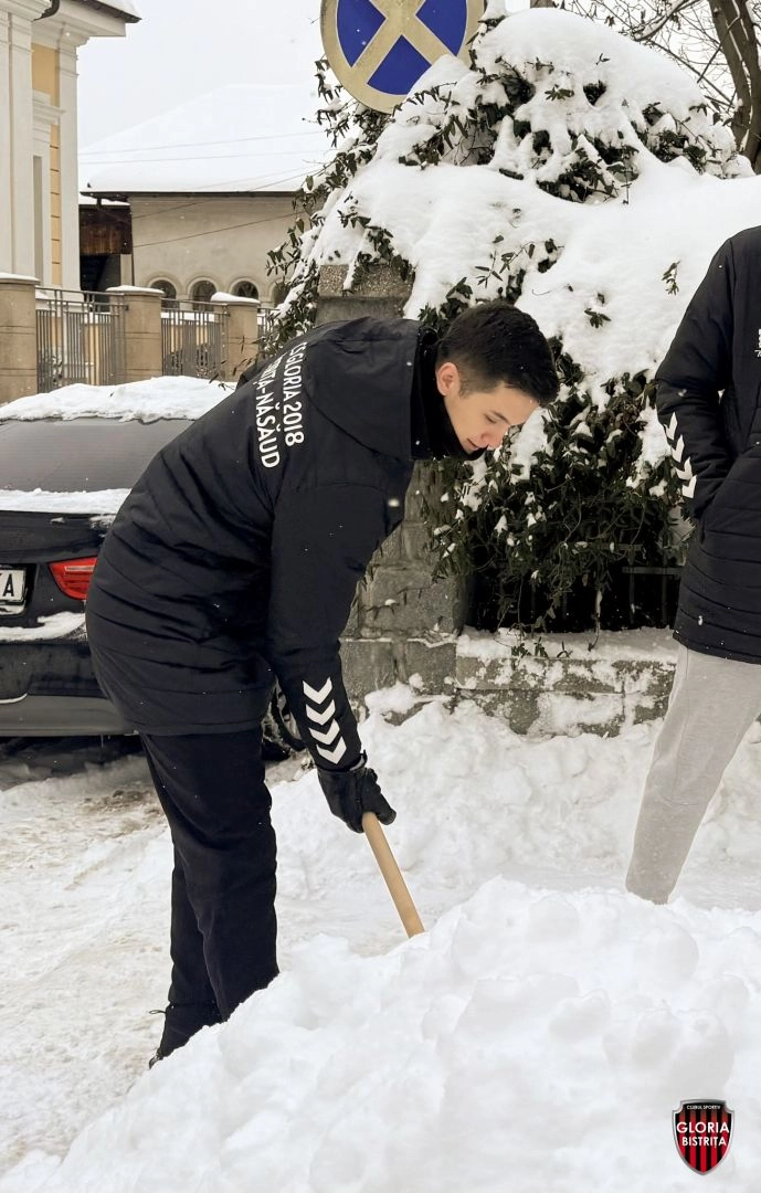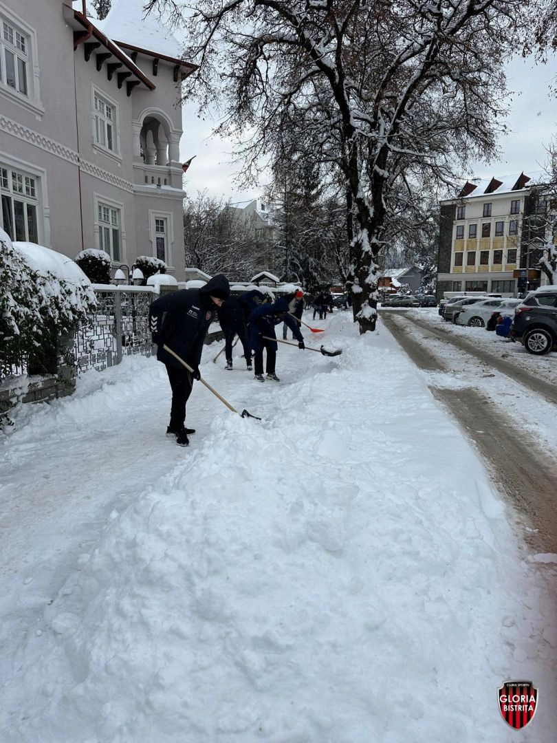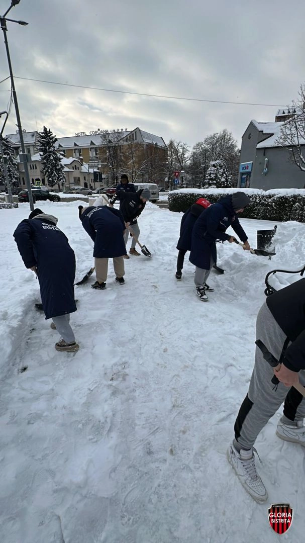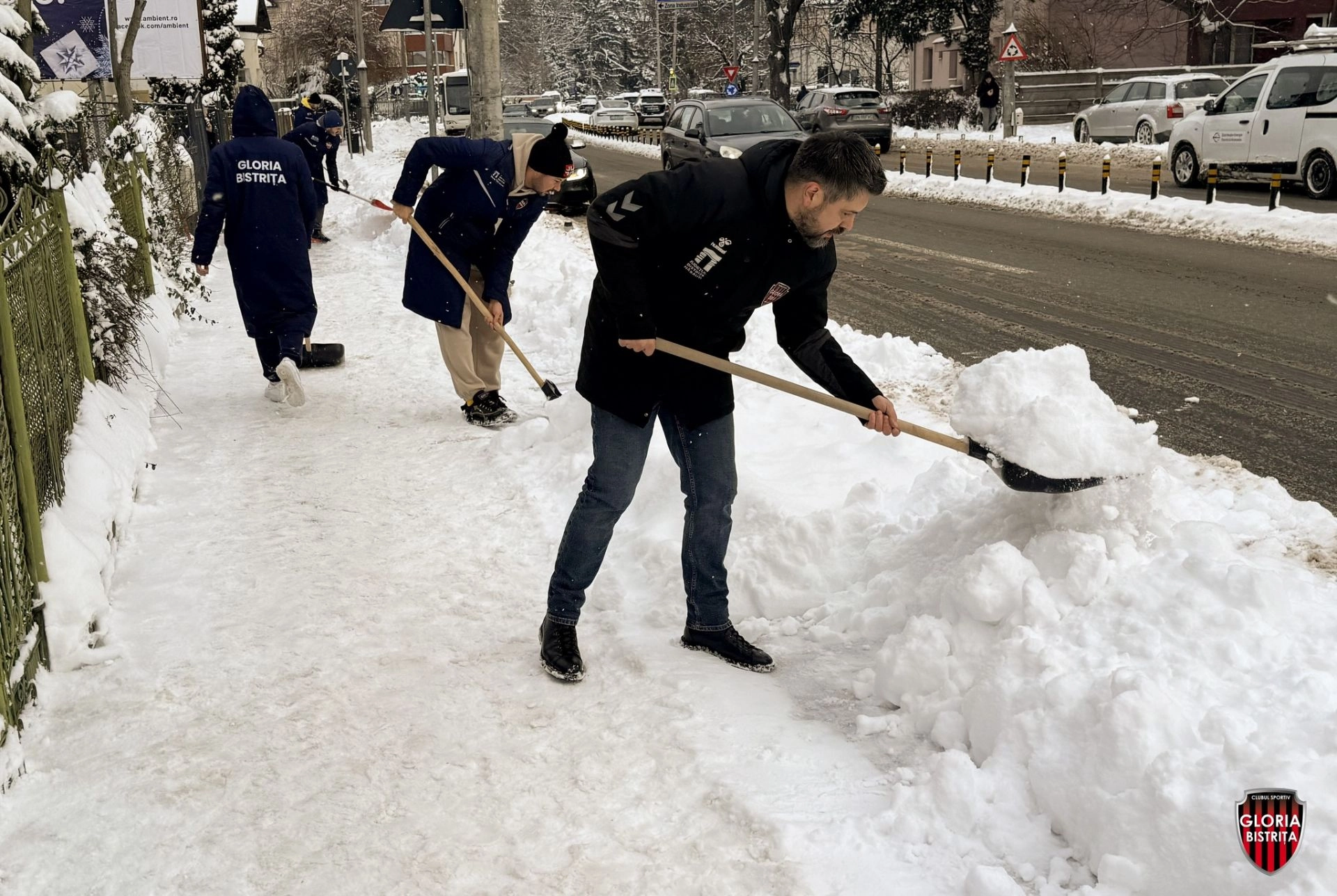 Mai mulți sportivi, antrenori și reprezentanți ai clubului Gloria Bistrița au participat la o acțiune de deszăpezire pe străzi.