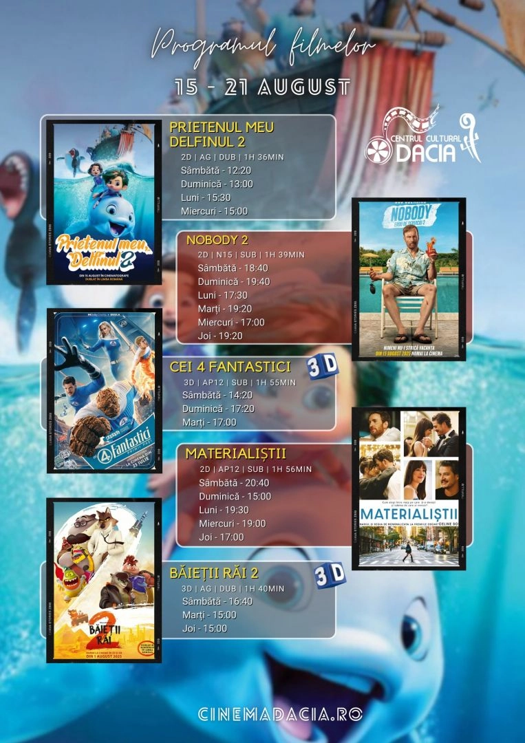 Programul filmelor din perioada 15-21 august, la Cinema Dacia Bistriţa