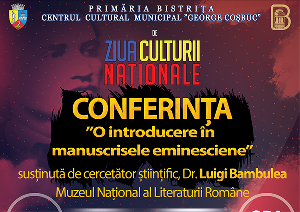 Ziua culturii naționale 2022 – Conferința ” O introducere în manuscrisele eminesciene” 14 ianuarie 2022 ora 16:00