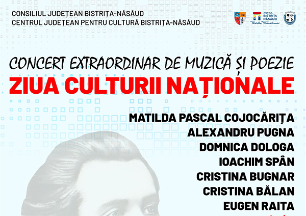 CONSILIUL JUDEȚEAN BISTRIȚA-NĂSĂUD CENTRUL JUDEȚEAN PENTRU CULTURĂ BISTRIȚA-NĂSĂUD vă invită la CONCERT EXTRAORDINAR DE MUZICĂ ȘI POEZIE ZIUA CUL...