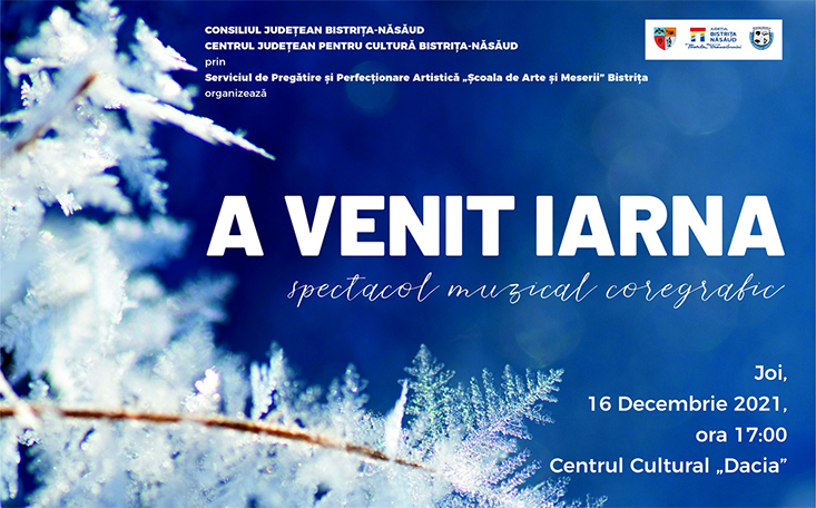 Spectacol muzical-coregrafic – A VENIT IARNA Școala de Arte și Meserii Bistrița Joi, 16 decembrie 2021, ora 17:00 Centrul Cultural „Dacia...
